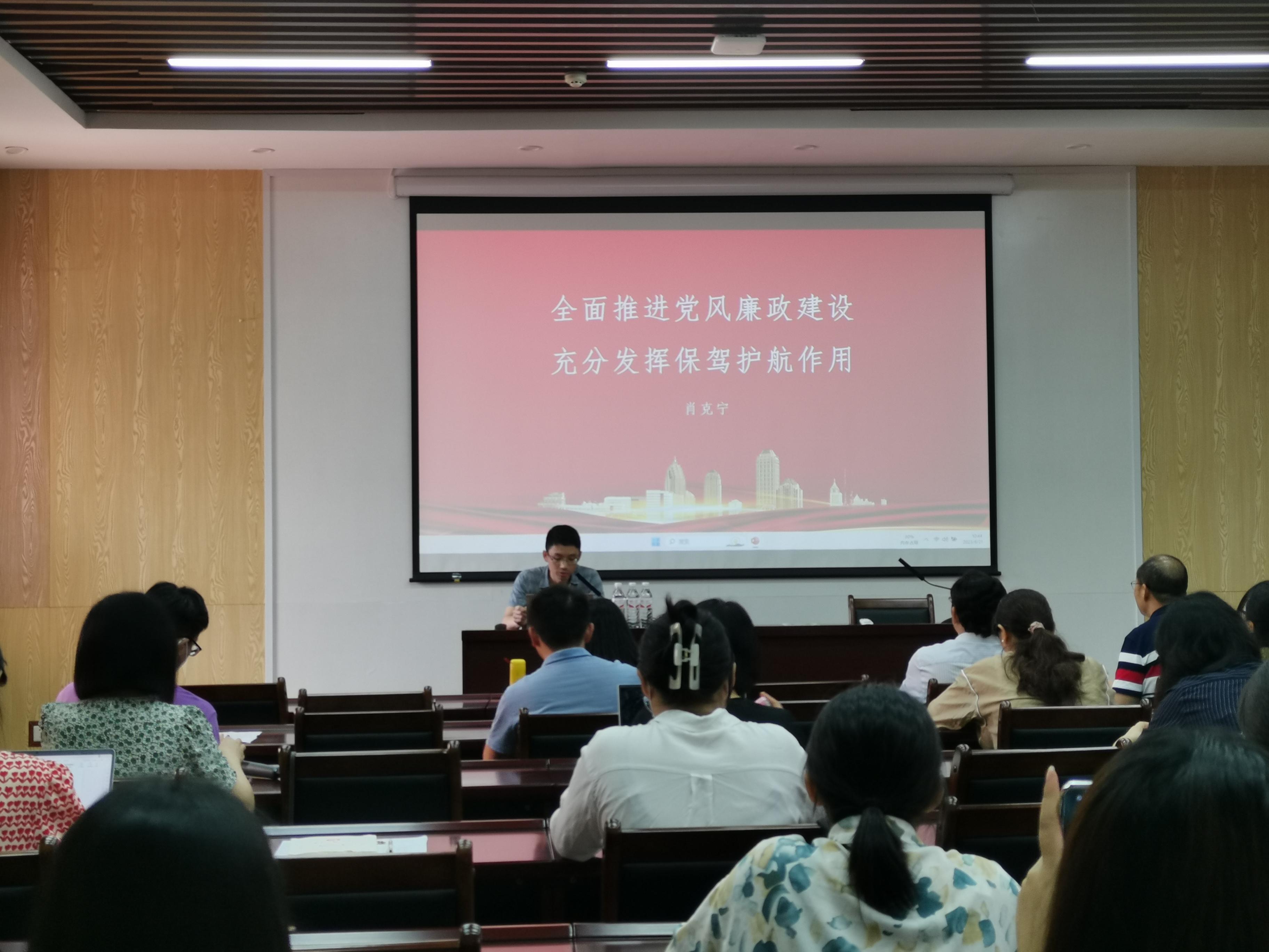 肖克宁副书记主讲党课题为《全面推进党风廉政建设 充分发挥保驾护航作用》,内容包括调研背景及过程、存在问题及根据、整改措施等。肖克宁副书记指出,要深入推进作风建设,落实勤政为民要求,持续推进廉政建设,发挥保驾护航作用。
