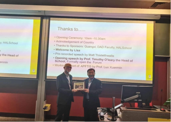 罗选民院长向新南威尔士大学人文学院院长赠送广西大学铂金画