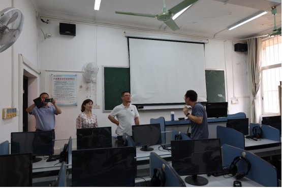 最后,陈碧兰一行检查了公共管理学院MPA案例制作实验室和城镇化与土地资源管理实验室。黄宏伟一行检查了我院第十一教学楼的语音实验室。双方就实验室消防安全隐患等重点问题交换了意见和建议。