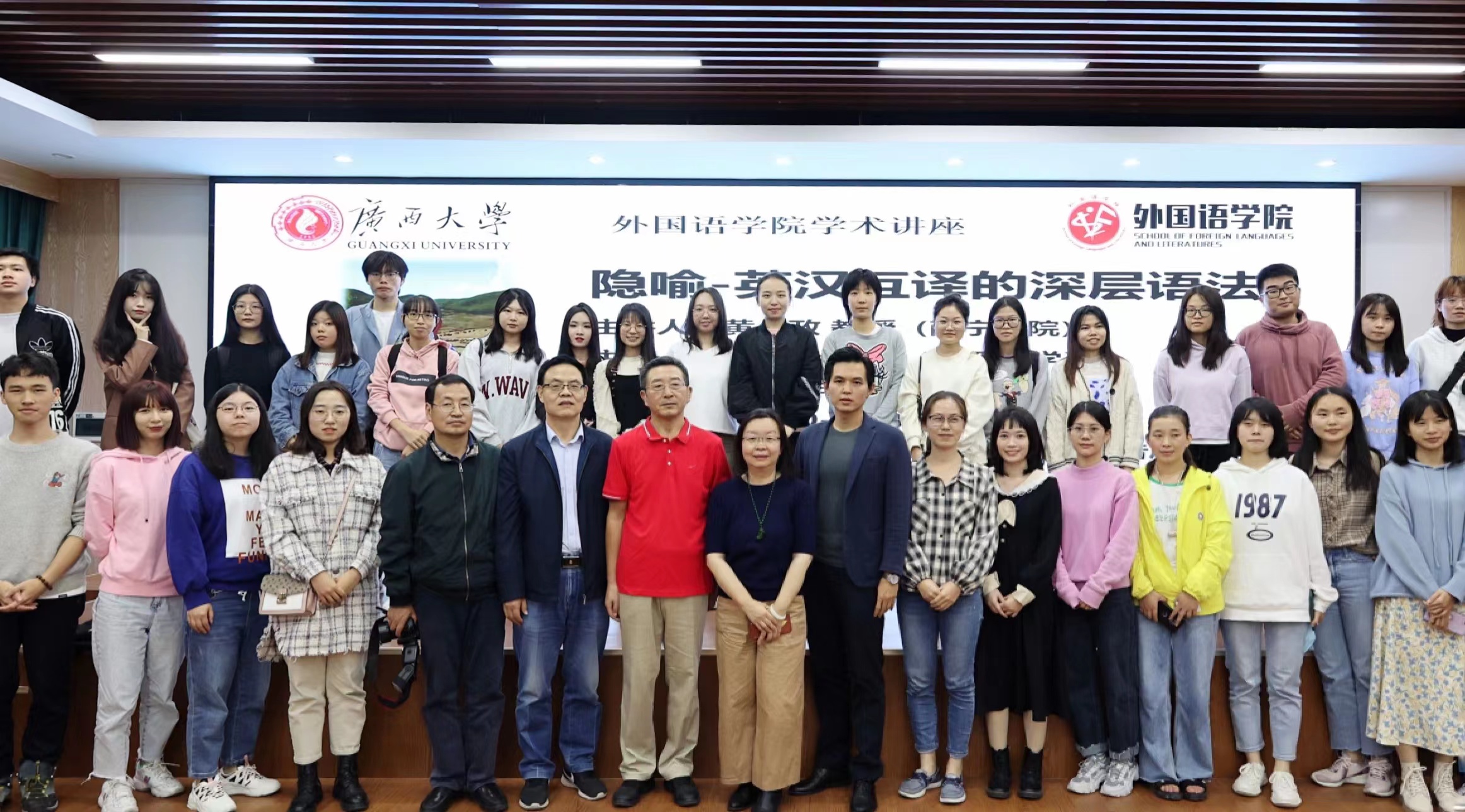 11月16日下午,英国上市公司365214报告厅成功举办了“隐喻-英汉互译的深层语法”的学术讲座。南宁学院黄少政教授主讲,为英国上市公司365众多师生讲述英汉互译的底层逻辑和对“隐喻”的新观点。讲座由陈兵教授主持,我院老师和学生,特别是翻译专业的学生前来聆听。