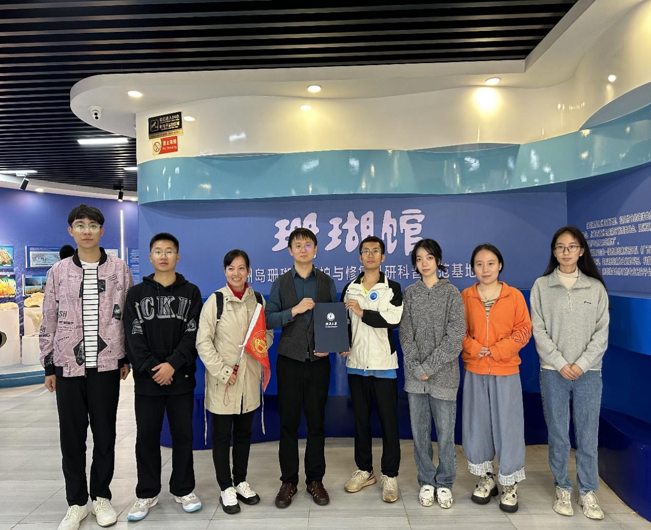 (汇学班语言实习团队在涠洲岛珊瑚馆前合影)