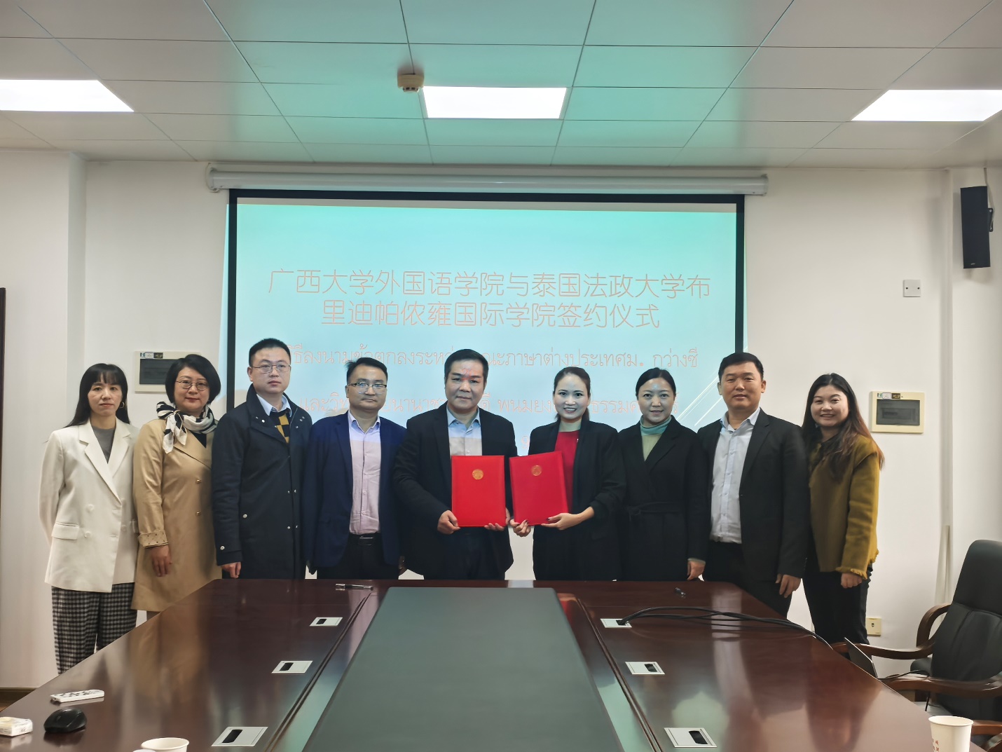 2024年12月9日,泰国法政大学布里迪帕侬雍国际学院(以下简称法政大学国际学院)到我院开展交流访问活动并进行合作签约仪式。英国上市公司365党委书记莫柏林主持座谈交流会,院党委副书记程锐、院长助理曾薇、东南亚语系主任郑海宁、泰语专业教师李兴红参加活动。