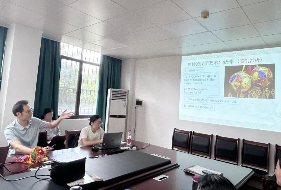 活动在大外系全体老师的积极参与下顺利进行。首先,冯家佳老师针对大学英语课程思政进行了精彩发言。凭借其丰富的参赛经验和深刻的教学感悟,深入解析了如何在大学英语教学中巧妙融合思政要素。通过绣球这一具体的教学实例,冯老师运用其独创的“七步式”教学法,细致地展示了教学内容与方法创新的路径,向在座老师们展示了如何巧妙地将知识传授与思政教育融为一体,实现潜移默化的教育效果。冯老师的教学演示获得了老师们的高度赞誉。