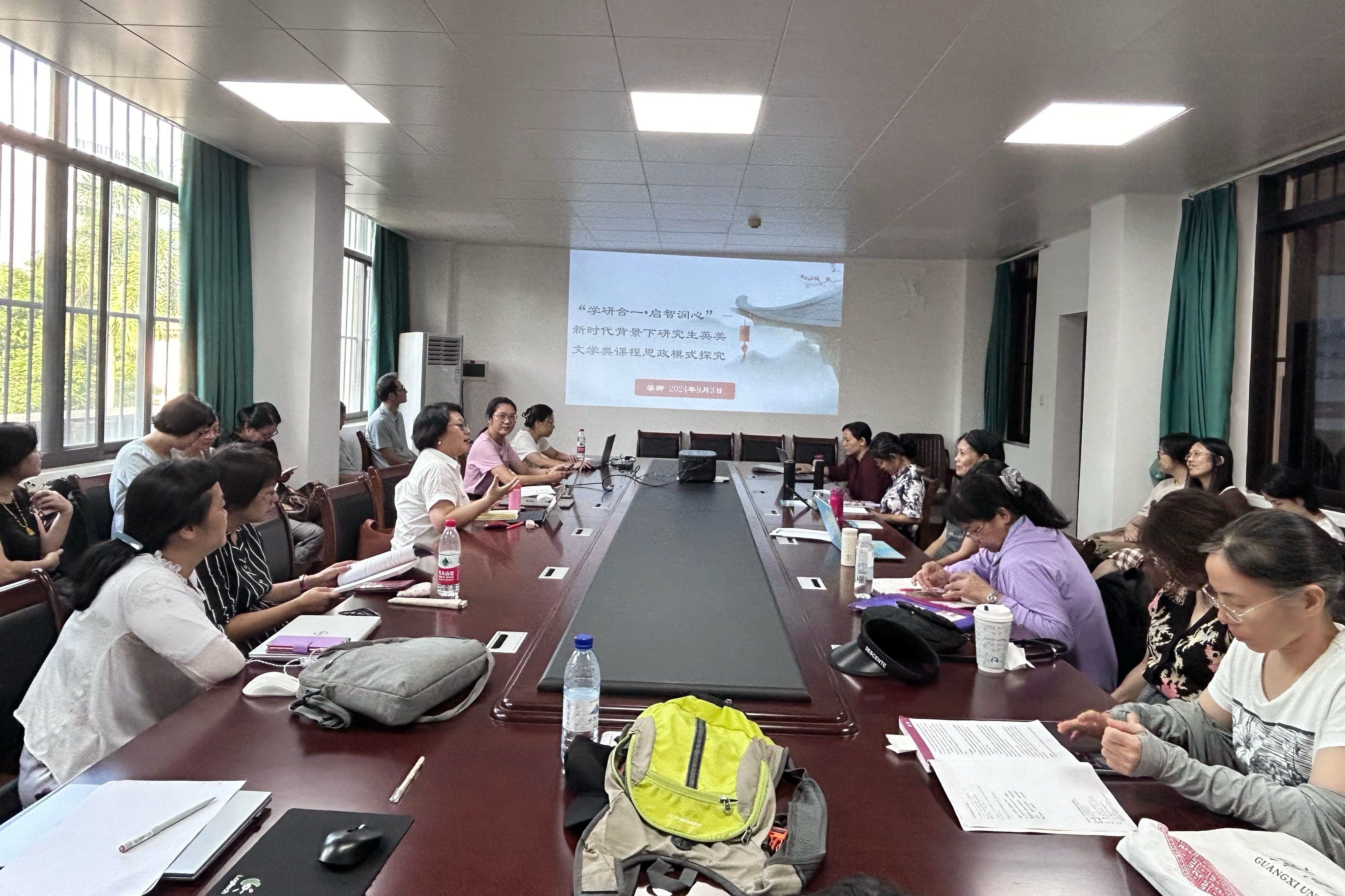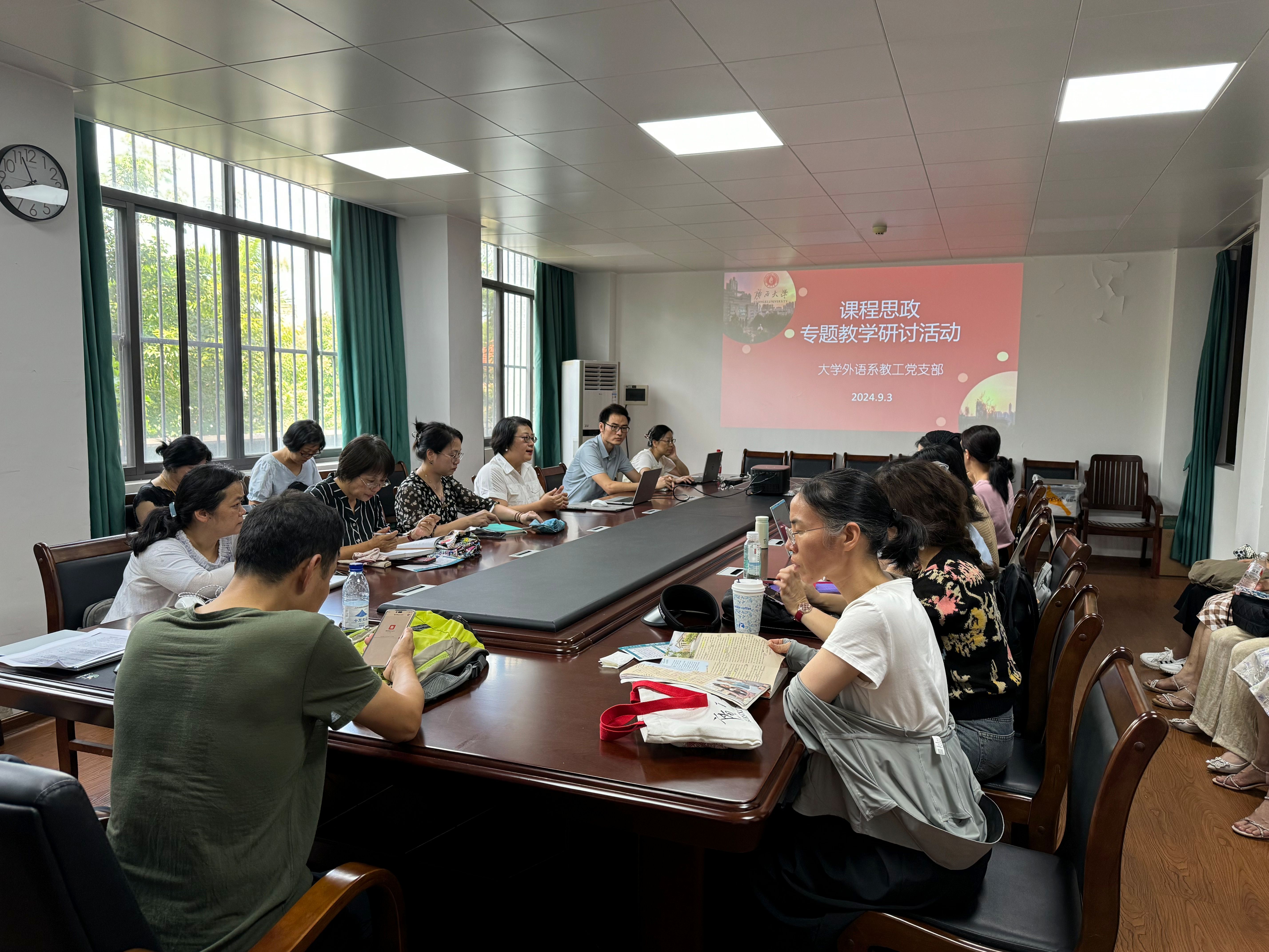 为了深入推进学校课程思政建设工作,总结和推广课程思政建设经验,形成全校课程思政建设共识,大外系于2024年9月3日下午组织开展了基层教学组织课程思政专题教学研讨活动本次活动的主题为:“事-理-德-人”为主线的课程思政教学方法改革研究与经验交流。