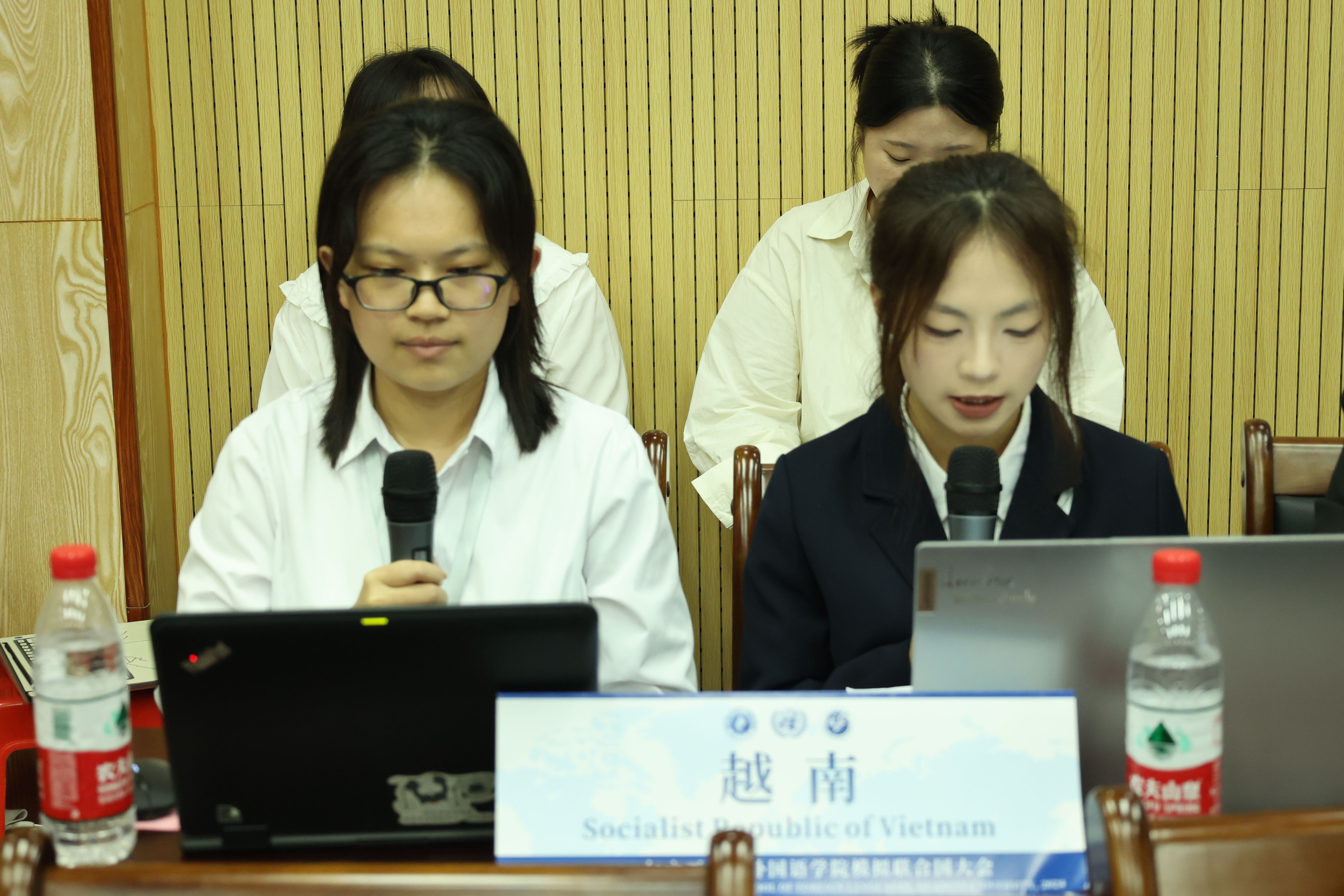 大会共设置十二个国家代表团,涉及中文、英语、日语、越南语四种工作语言。与会代表模拟各国外交官,立足现实积极发声,就人工智能这一国际热点问题展开深入探讨,展望人工智能在不同领域的应用,分析其对人类文明发展的影响,探讨全球人工智能治理方案,并共同商榷最终决议草案。
