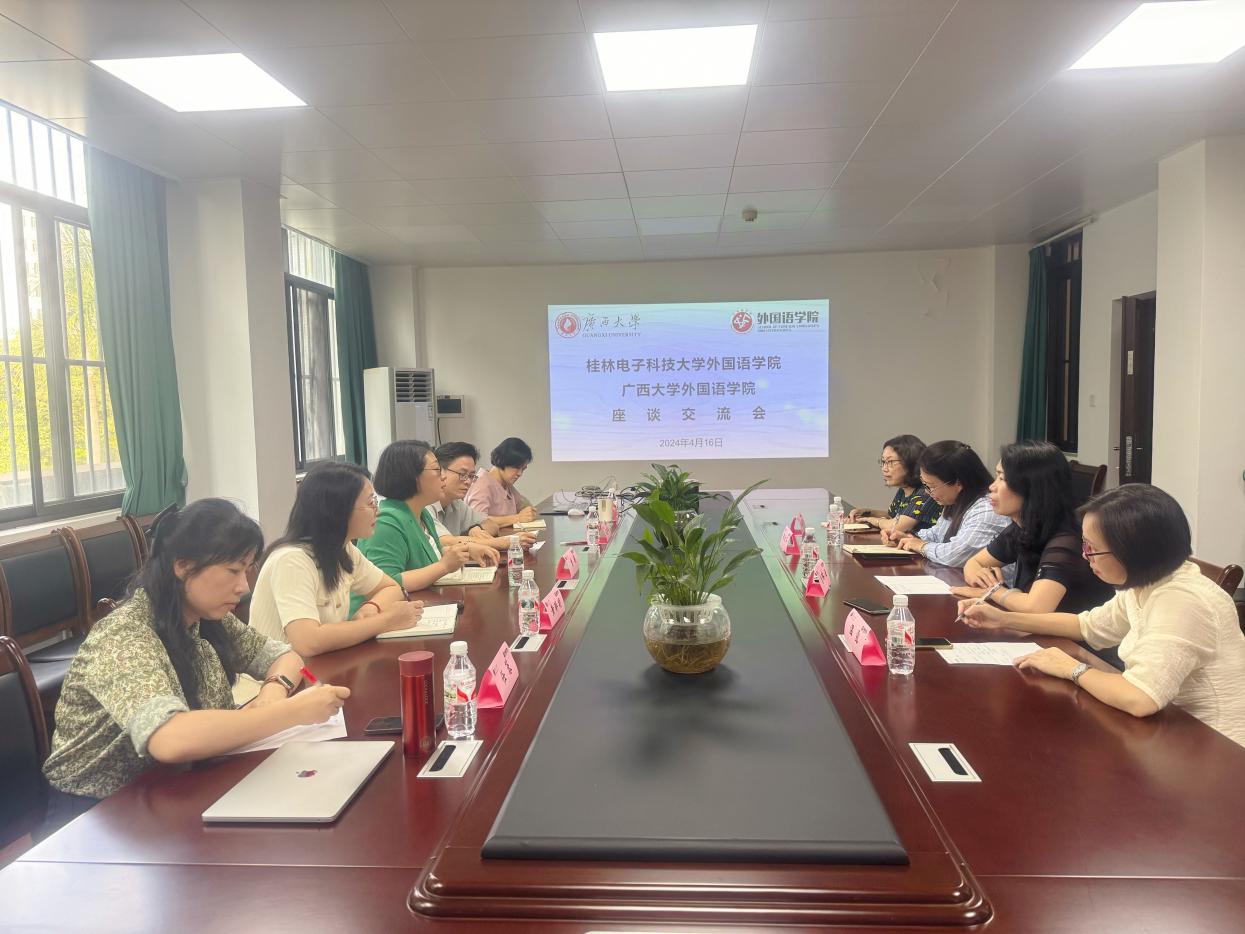 2024年4月16日下午,桂林电子科技大学英国上市公司365大学英语系骨干教师一行到我院调研交流,我院大学外语系负责人及相关教师参加座谈交流会。