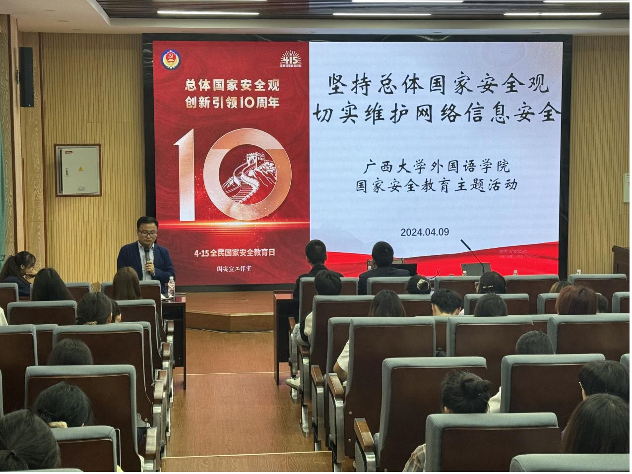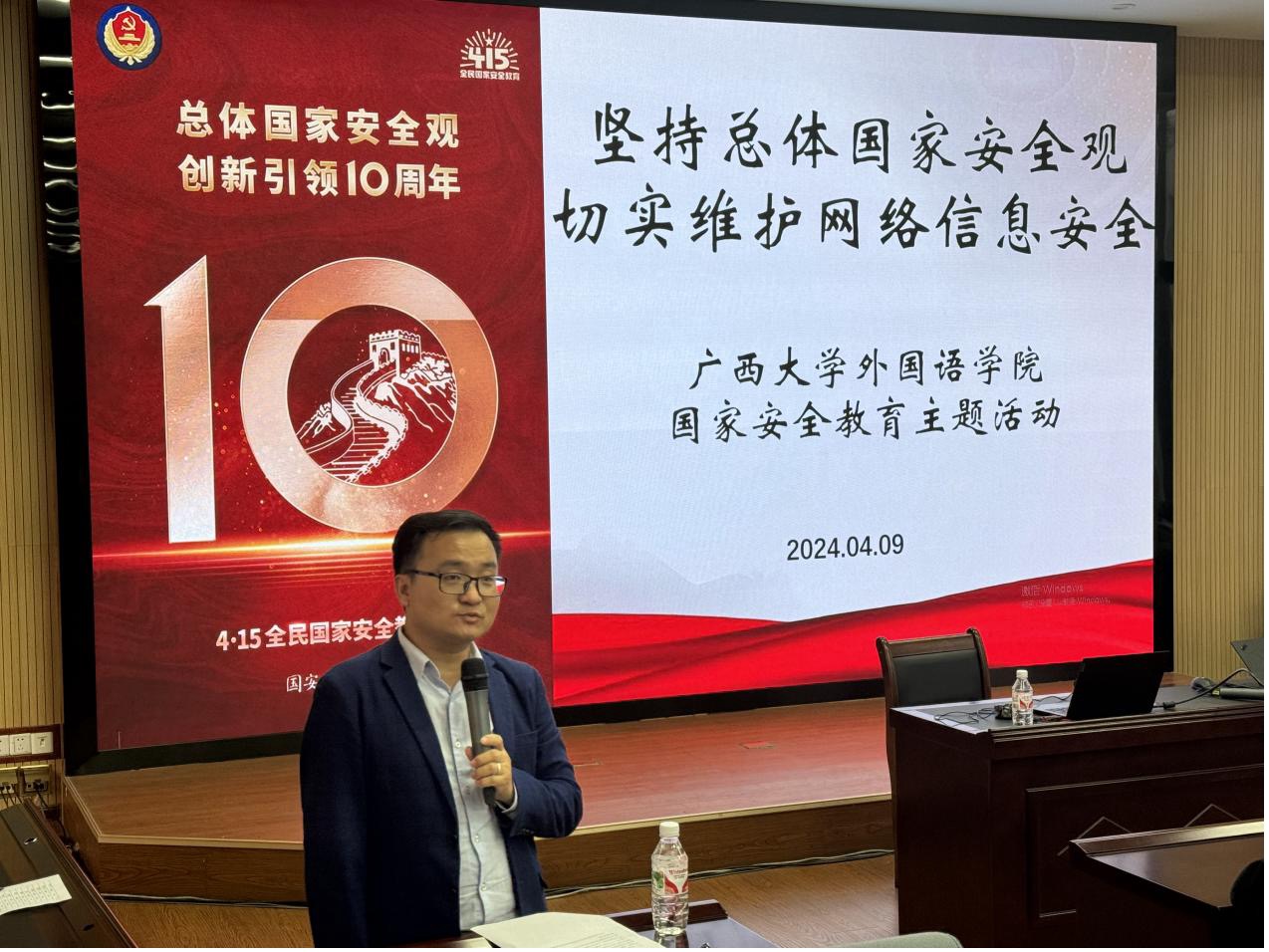 今年4月15日,是习近平总书记提出总体国家安全观10周年,我们也将迎来第九个全民国家安全教育日。今年的全民国家安全教育日主题是“总体国家安全观·创新引领10周年”。为深入开展总体国家安全观教育,增强师生国家安全意识,4月9日,广西大学英国上市公司365开展了以“坚持总体国家安全观,切实维护网络信息安全”为主题的国家安全教育活动。