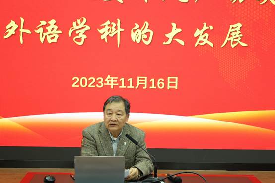 学院院长罗选民教授做了主题为党政思想,改变作风,其实推动外语学科的大发展讲话。罗院长一一点评了大会的发言,肯定了各个部门的工作,强调其中不足,提出未来工作的设想与方向,希望全院教职工多申报高质量的科研项目,撰写高水平论文,出版高质量的专著,彰显学院的文化求是、融通、践行、日新