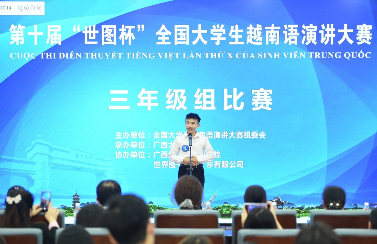 开幕式之后即举行演讲比赛,二年级组、三年级组、四年级组比赛分别在13日上午、下午和14日上午进行,比赛内容包括自定题演讲和即兴演讲两部分。参赛选手们紧扣演讲主题,尽情施展才华,用越南语分享鲜活事例,讲述自己对时代、对青春、对奉献的感悟,表达自己对祖国未来发展的美好期望以及不断完善自我的决心意志。