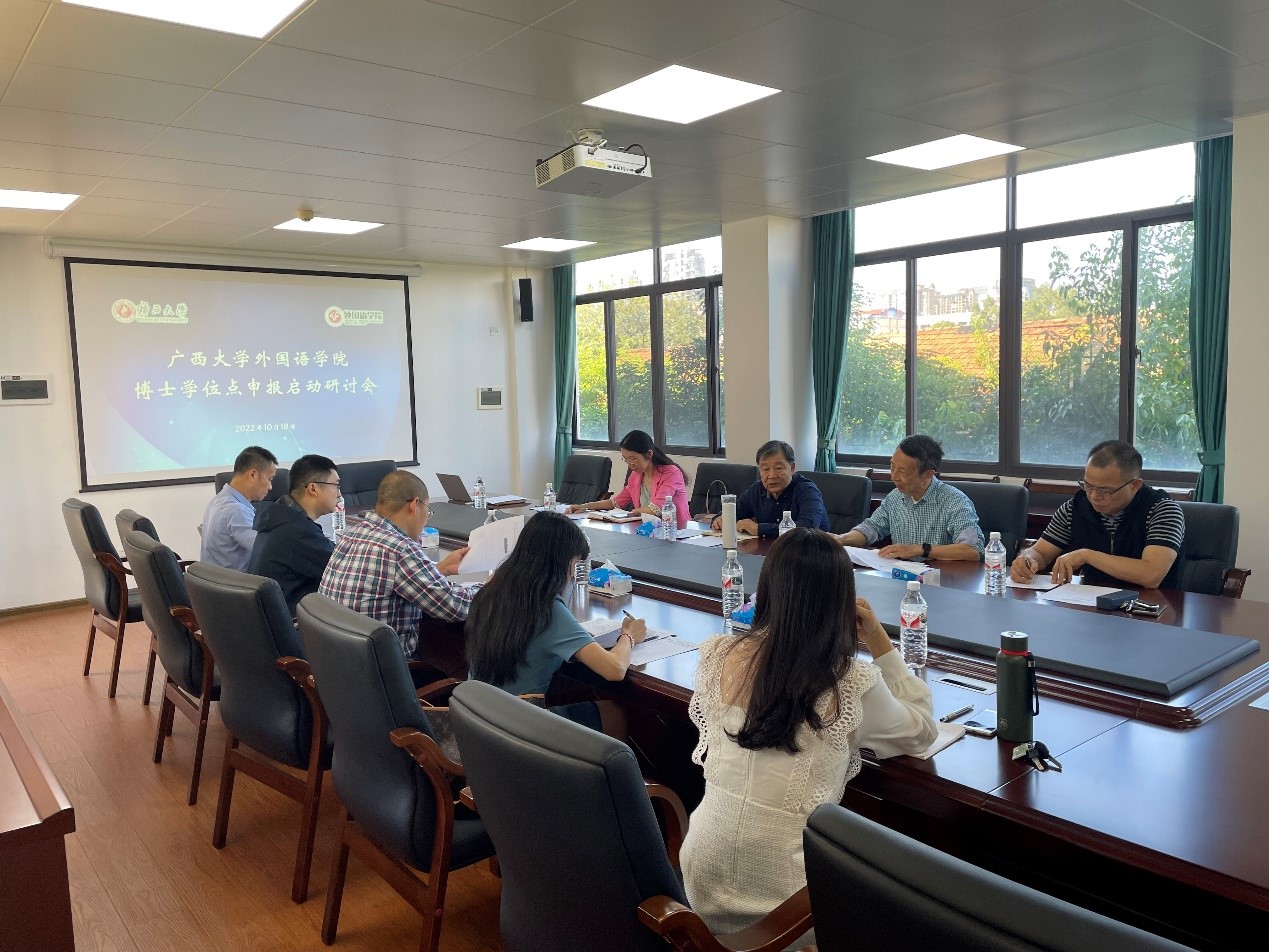 白副院长首先向参会人员汇报了学校博士学位点申报的工作计划和初步安排,罗院长就外语学院“申博”工作发表讲话,他总结了上一轮申博工作的经验,分析我院外国语言文学学科目前的发展现状,并对接下来的申报工作任务进行了部署安排。其他老师围绕国家最新发布的学科专业目录、申博政策和导向及我院外语学科及人才培养的特色等方面进行了深入探讨和交流。