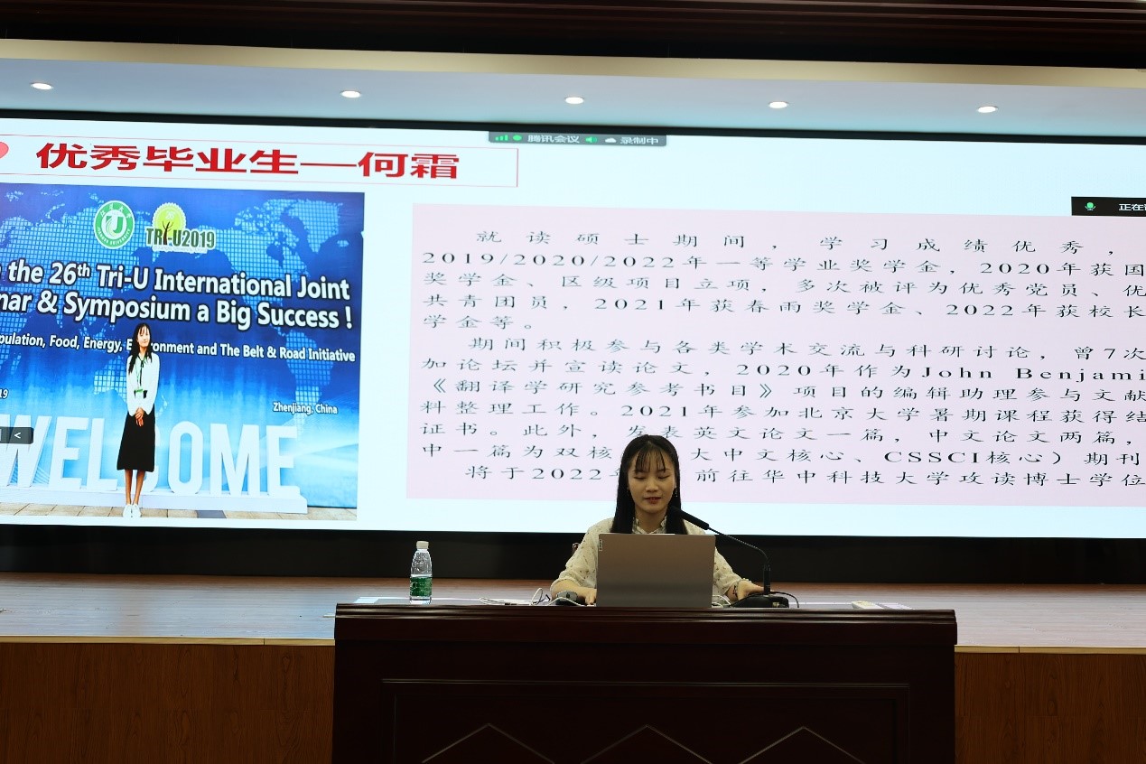 (图为19级外国语言文学何霜同学分享经验中)