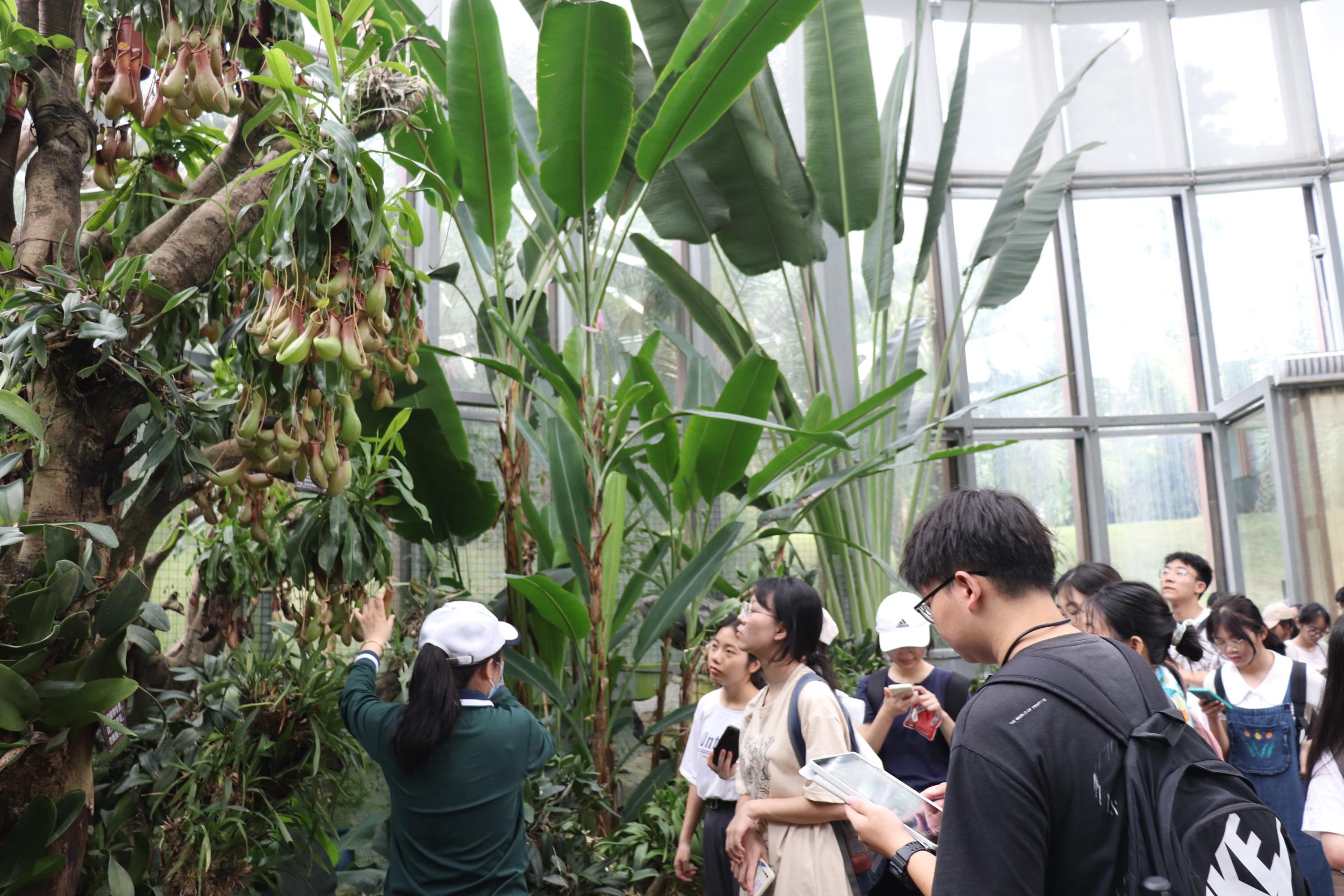 学院们参观猪笼草、芭蕉等亚热带、热带植物