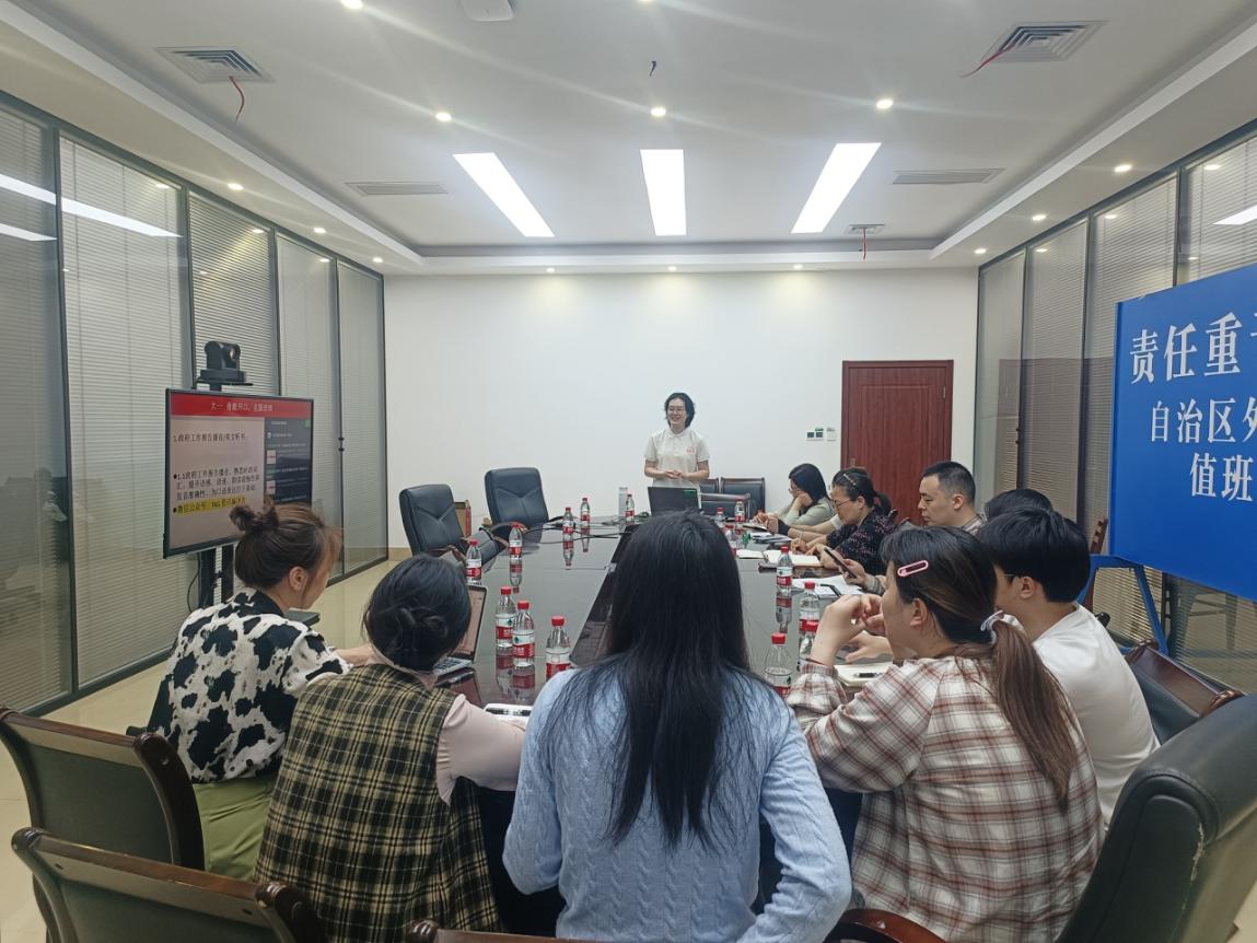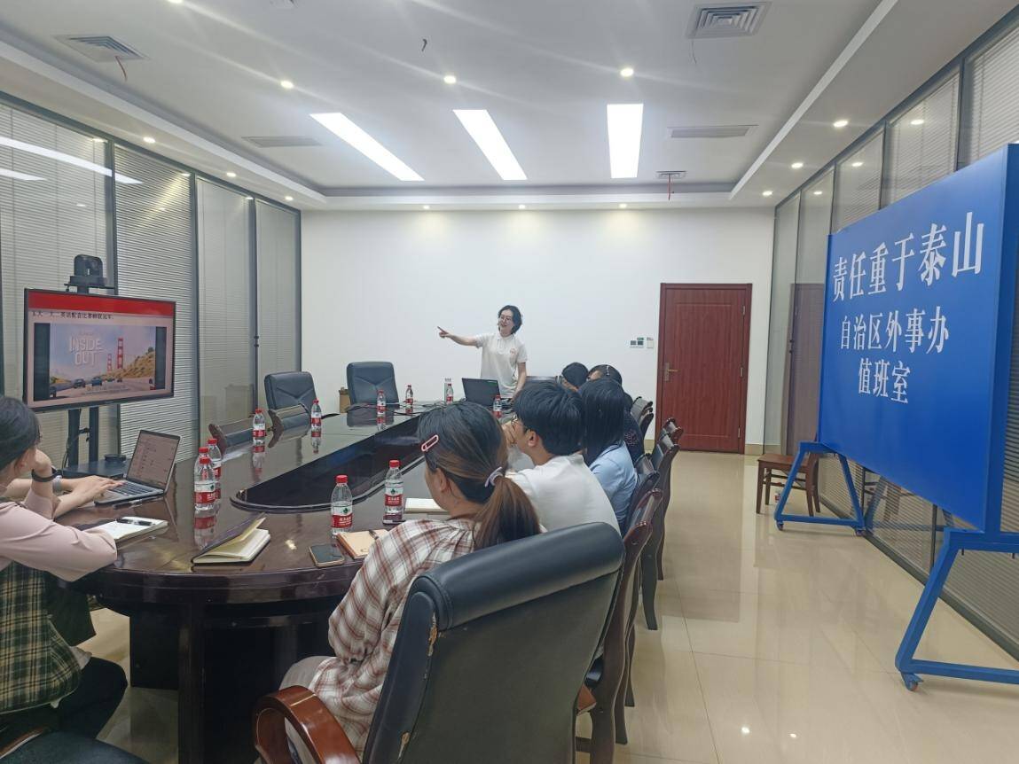 本次活动吸引自治区外事办翻译室主任沈菲译审、秦尊璐译审、谢易君二级翻译等10余名外事干部参与。白蕊铭同学的分享内容丰富、实用性强,得到了与会人员的高度评价,他们就英语学习中的具体问题与两位同学进行了深入交流,现场互动气氛热烈。