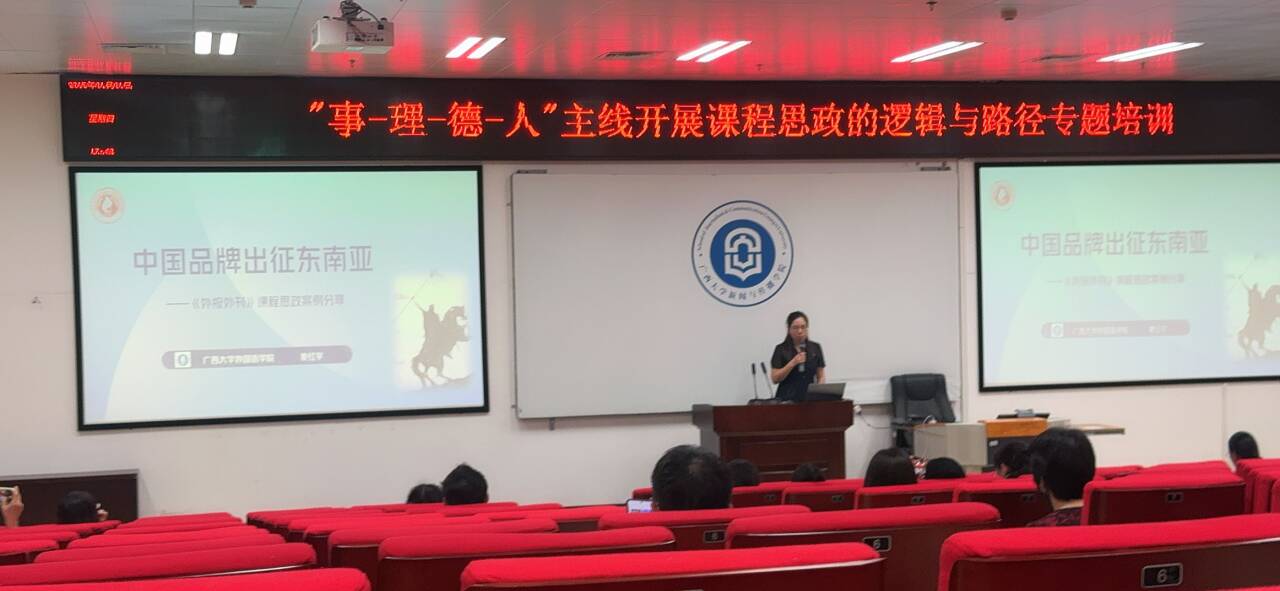 为深入贯彻党的教育方针和课程思政建设要求,进一步发挥党建引领作用,提升教师的实战操作能力,我校教务处于5月13日上午在新闻与传播学院西报告厅成功举办“事-理-德-人”主线课程思政专题培训。英文系翻译系教工党支部教师麦红宇副教授作为主讲嘉宾,分享了她的教学经验与创新实践,体现了党支部在推动课程思政改革中的积极作用。