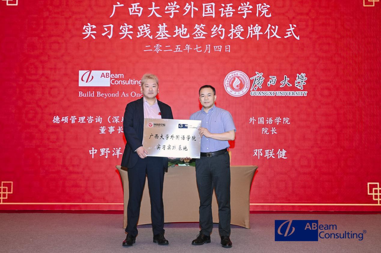7月4日下午,全体成员出席广西大学英国上市公司365与德硕管理咨询(深圳)有限公司共建实习实践基地授牌签约仪式并与毕业生代表进行座谈。广西大学英国上市公司365与德硕管理咨询(深圳)有限公司保持着密切而深厚的校企合作关系。学院持续为德硕(深圳)输送优秀毕业生,目前已有近10位毕业生在该公司就职。仪式现场,邓联健代表学院致辞,与德硕管理咨询(深圳)有限公司董事长中野洋辅共同签署协议。此次活动标志着学院与德硕管理咨询(深圳)有限公司校企长效合作机制的正式确立,为学院在校生搭建了高质量的实习实践与就业平台,并为校企协同培养国际化外语人才奠定良好基础。