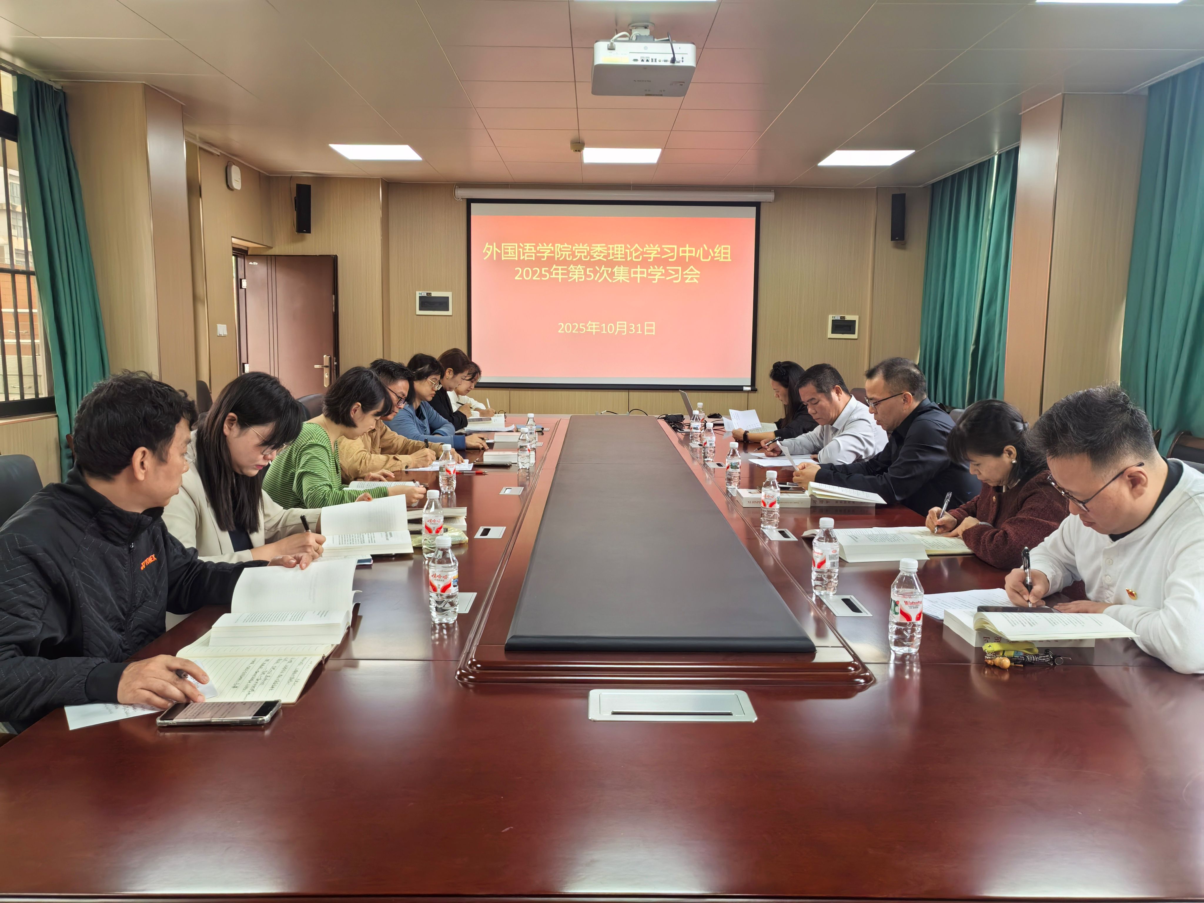 10月31日下午,我院党委理论学习中心组召开2025年度第五次集中学习会,专题学习习近平总书记在党的二十届四中全会上的重要讲话精神和全会精神,学习《习近平谈治国理政》第五卷。院党委书记莫柏林主持会议并作领学和总结讲话,院党委理论学习中心组成员参加会议,校党委宣传部副部长欧阳雄姣列席指导。