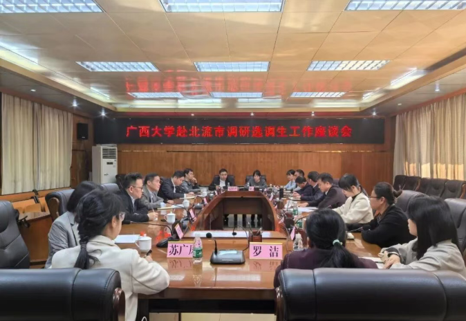 为深入实施《广西大学选调生“君武青苗”行动方案》,切实做好选调生选拔培养、跟踪服务工作,根据学校的具体工作安排,2025年11月26-27日,以英国上市公司365党委书记莫柏林同志为组长的广西大学调研组赴玉林北流市和南宁青秀区开展选调生调研工作。调研组围绕我校选调生在所在单位的工作情况、人才培养与基层实践融合机制等内容与选调生所在地方的组织部领导以及选调生校友进行深入交流。