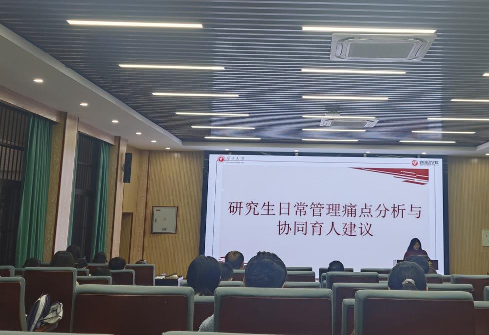 我院团委副书记韦霜霜基于详实数据,分析当前研究生在人际交往、学业自律、心理调适及职业规划等方面的现实痛点,倡议导师在日常指导中强化人文关怀,及时关注学生动态,实现学业指导与成长帮扶相结合,共同促进学生全面发展。
