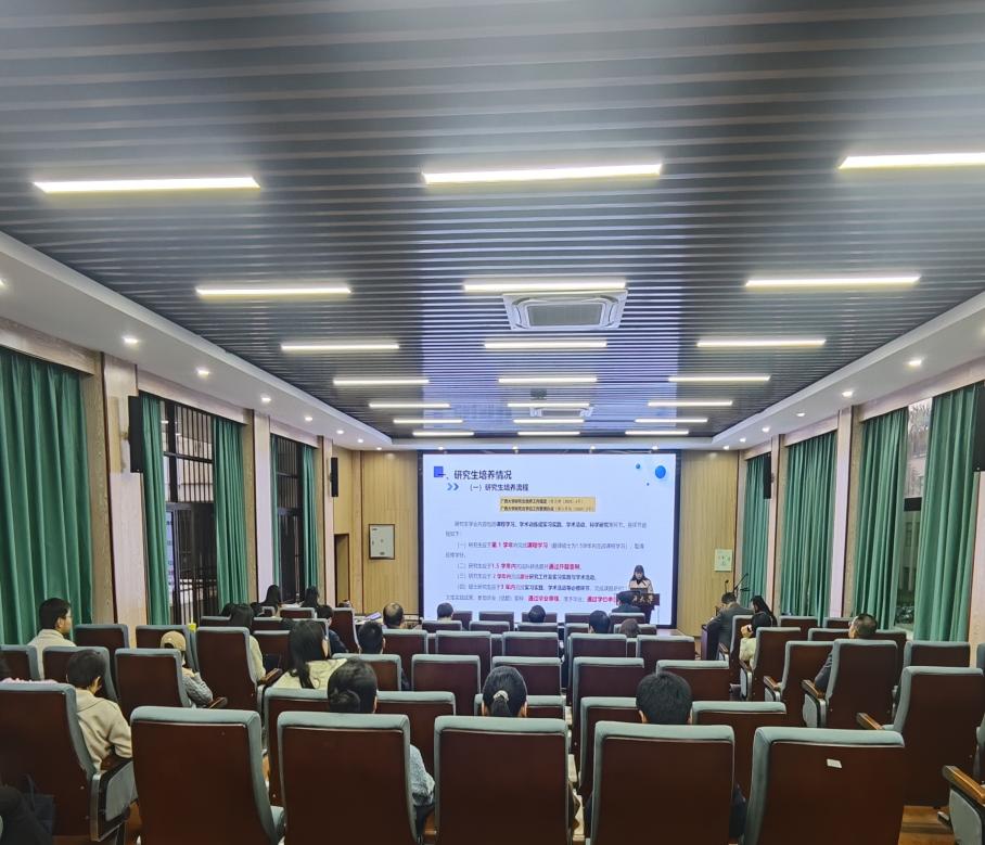 我院副院长梁燕华全面介绍了研究生培养情况,围绕学业进度安排、本学期开题答辩情况以及学位论文撰写规范的最新调整等进行说明。她强调,导师应持续关注学生学业进程,加强学位论文撰写的全过程指导,严把论文质量关,夯实人才培养基础。