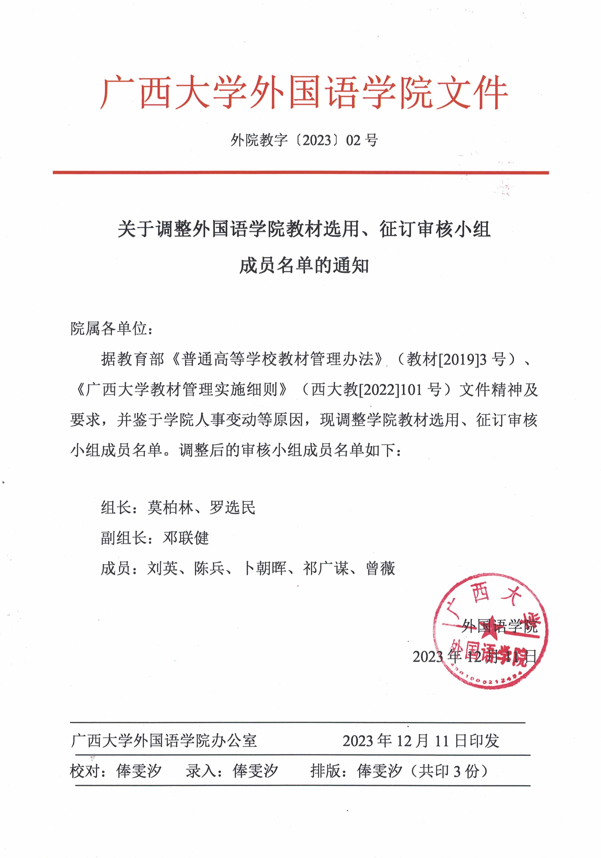 【本教文件】关于调整英国上市公司365教材选用、征订审核小组成员名单的通知