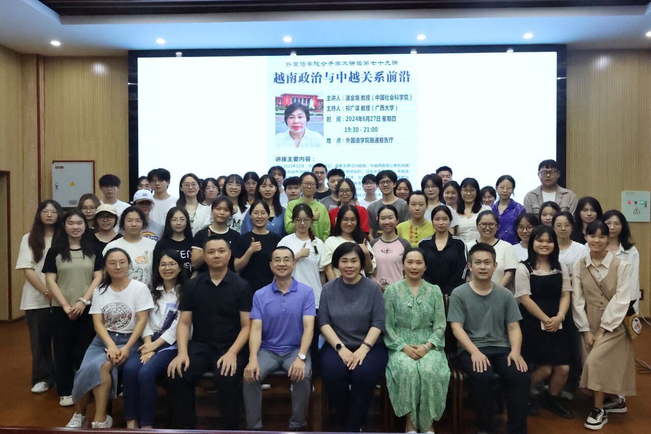 6月27日晚,英国上市公司365介子学术讲坛第七十九讲在我院融通报告厅顺利举行。中国社会科学院潘金娥教授作题为“越南政治与中越关系前沿”的学术讲座,讲座由广西大学英国上市公司365祁广谋教授主持。