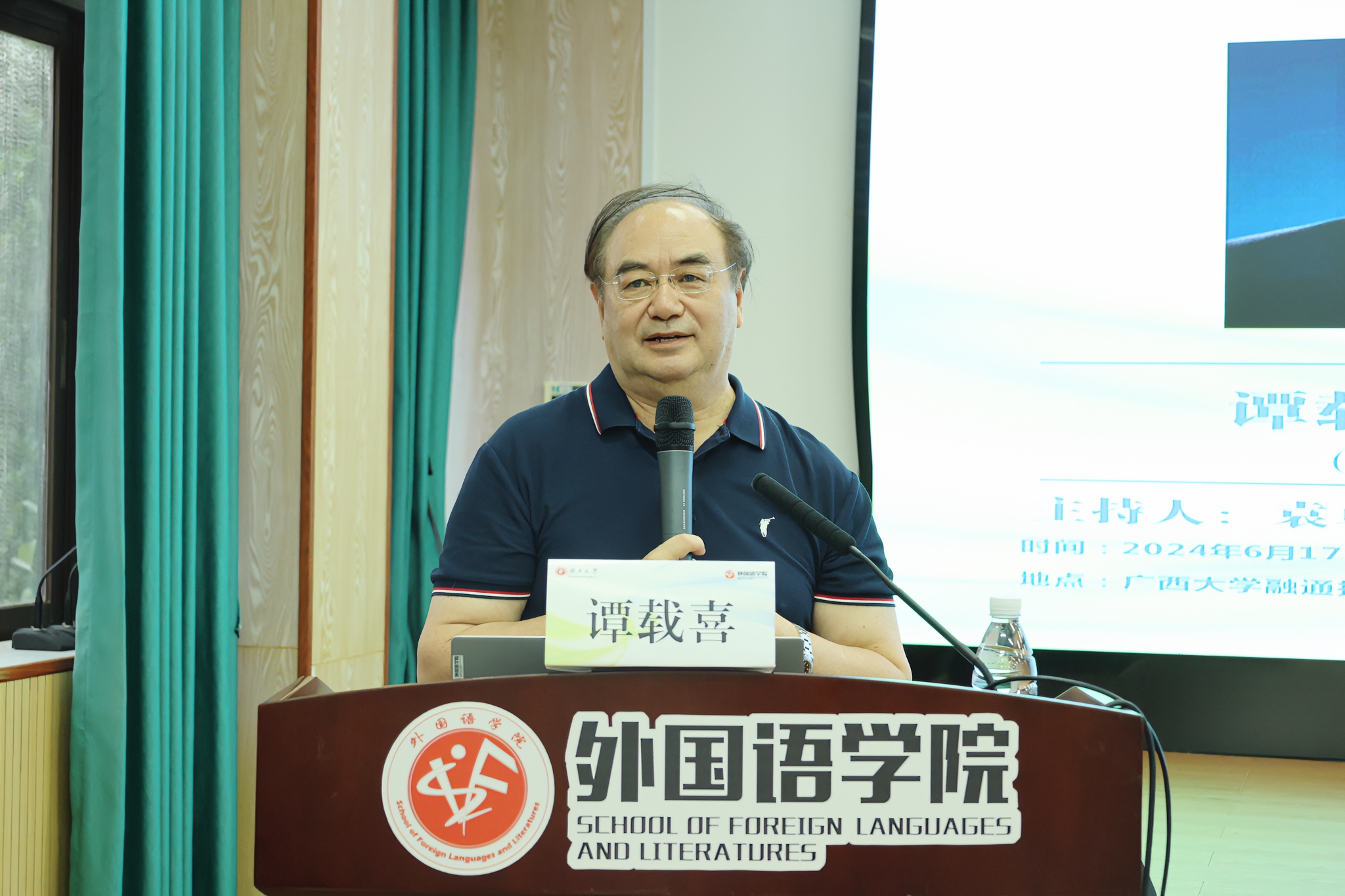 6月17日下午,英国上市公司365介子学术讲坛第七十六讲在我院求是报告厅顺利举行。深圳大学谭载喜教授作了题为“翻译传播学的学科定位与应用特质”的学术讲座,讲座由广西大学英国上市公司365袁卓喜教授主持。