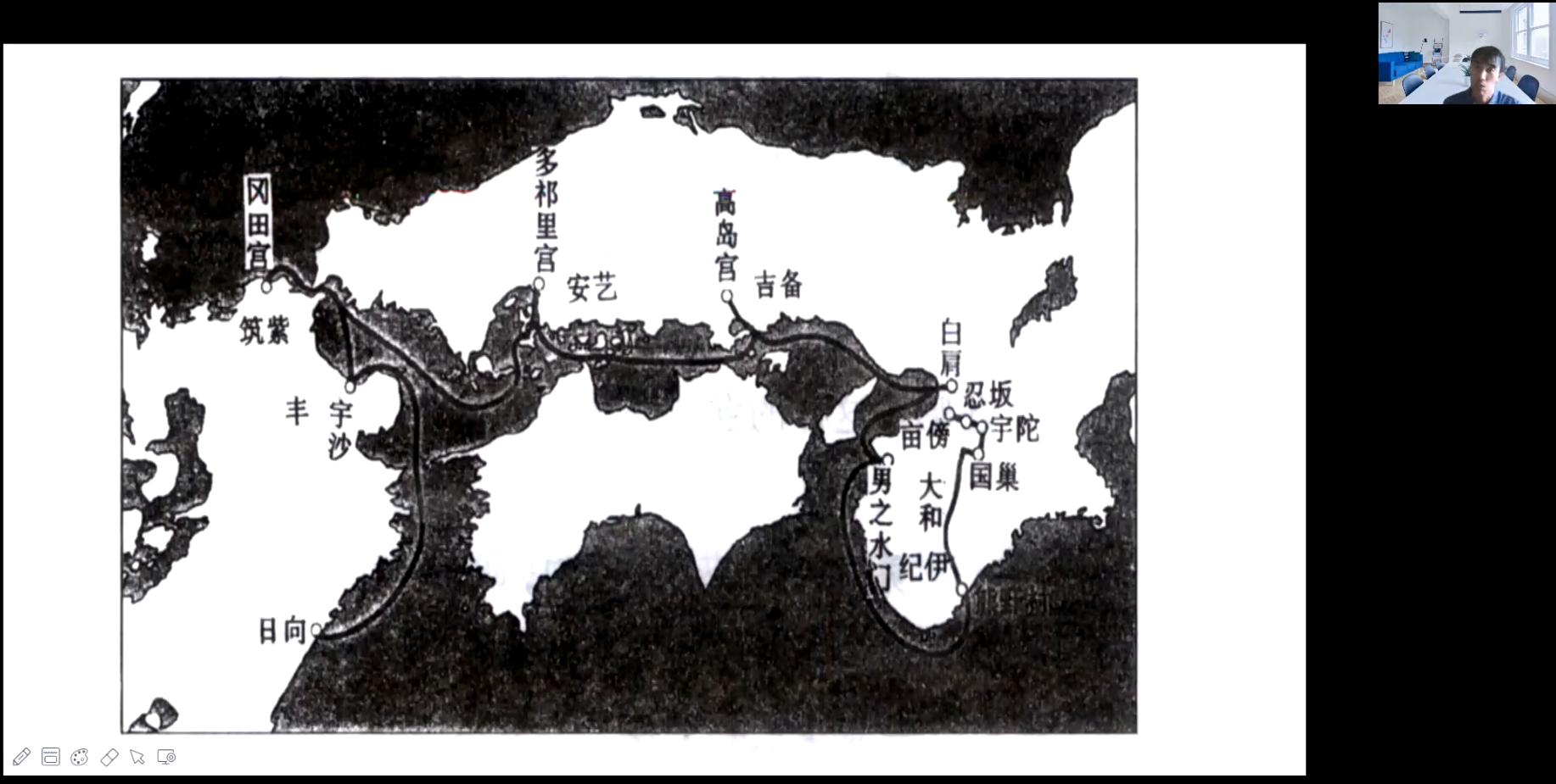 (图为陈教授正在讲述“神武东征”的具体路线)