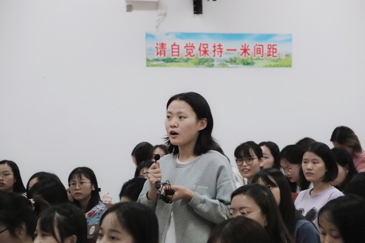 (图为2020级越南语笔译王子涵同学提问)