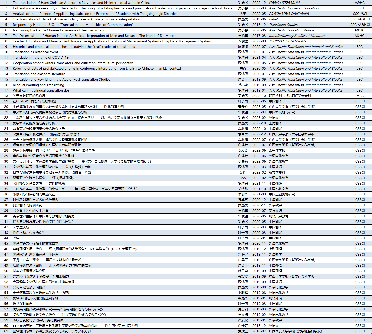 教师在国内外高水平学术刊物上发表的主要论文