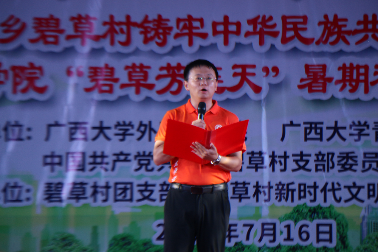碧草村驻村第一书记邓在斌代表碧草村全体村民,对我院暑期支教团一行的到来表示热烈欢迎,以及连续三年参与碧草小学支教予以最真挚的感谢。