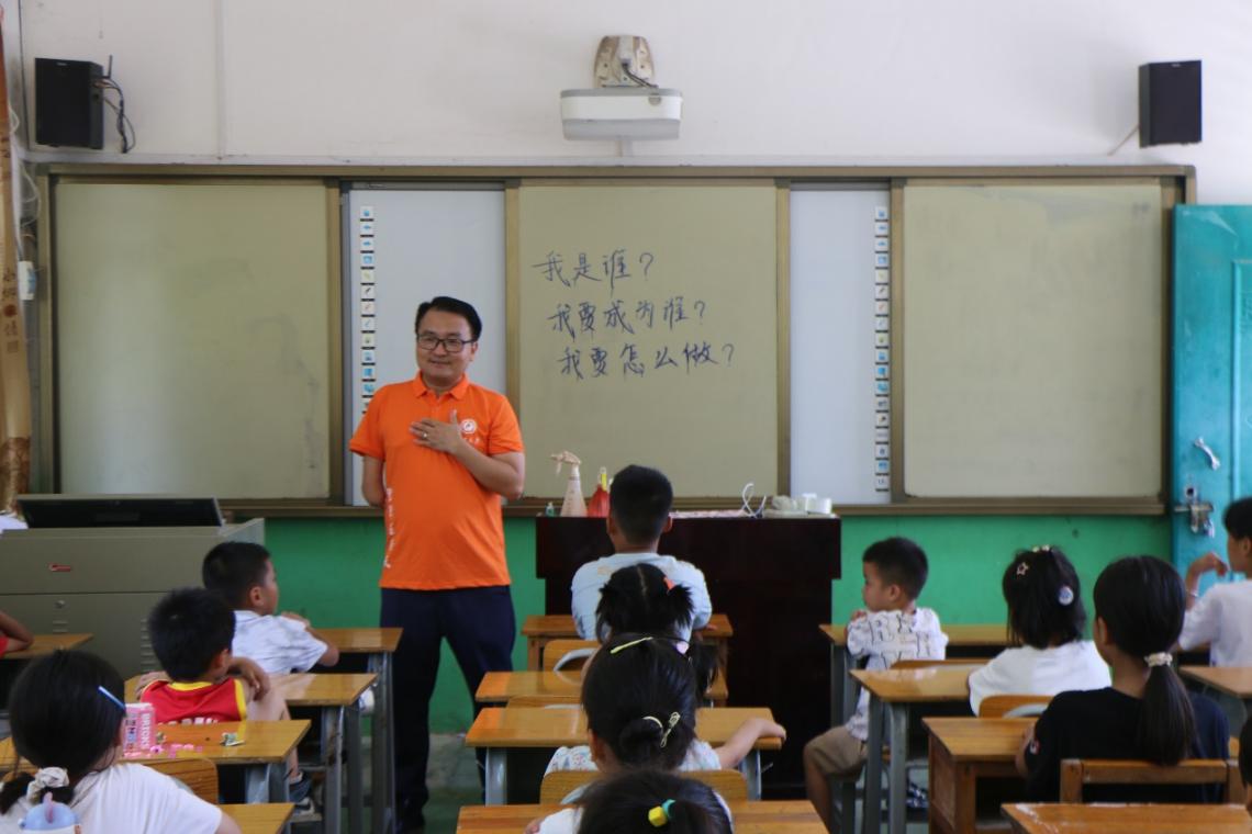7月16日,为了落实好为党育人、为国育才的教育目标,帮助少年儿童系好人生第一粒扣子,培养他们从小听党话、跑党走的决心,争做祖国和人民需要的好孩子,做祖国和人民事业发展的接班人,用实际行动把红色基因一代代传下去,我院党委书记莫柏林、党委副书记程锐、学生辅导员陈星宇、柯威、韦霜霜组成课程教研组,针对碧草村中小学生当前年龄阶段的特点,由程锐老师主讲,为碧草村的中小学生上了一门精心设计的《我是谁》思政课。