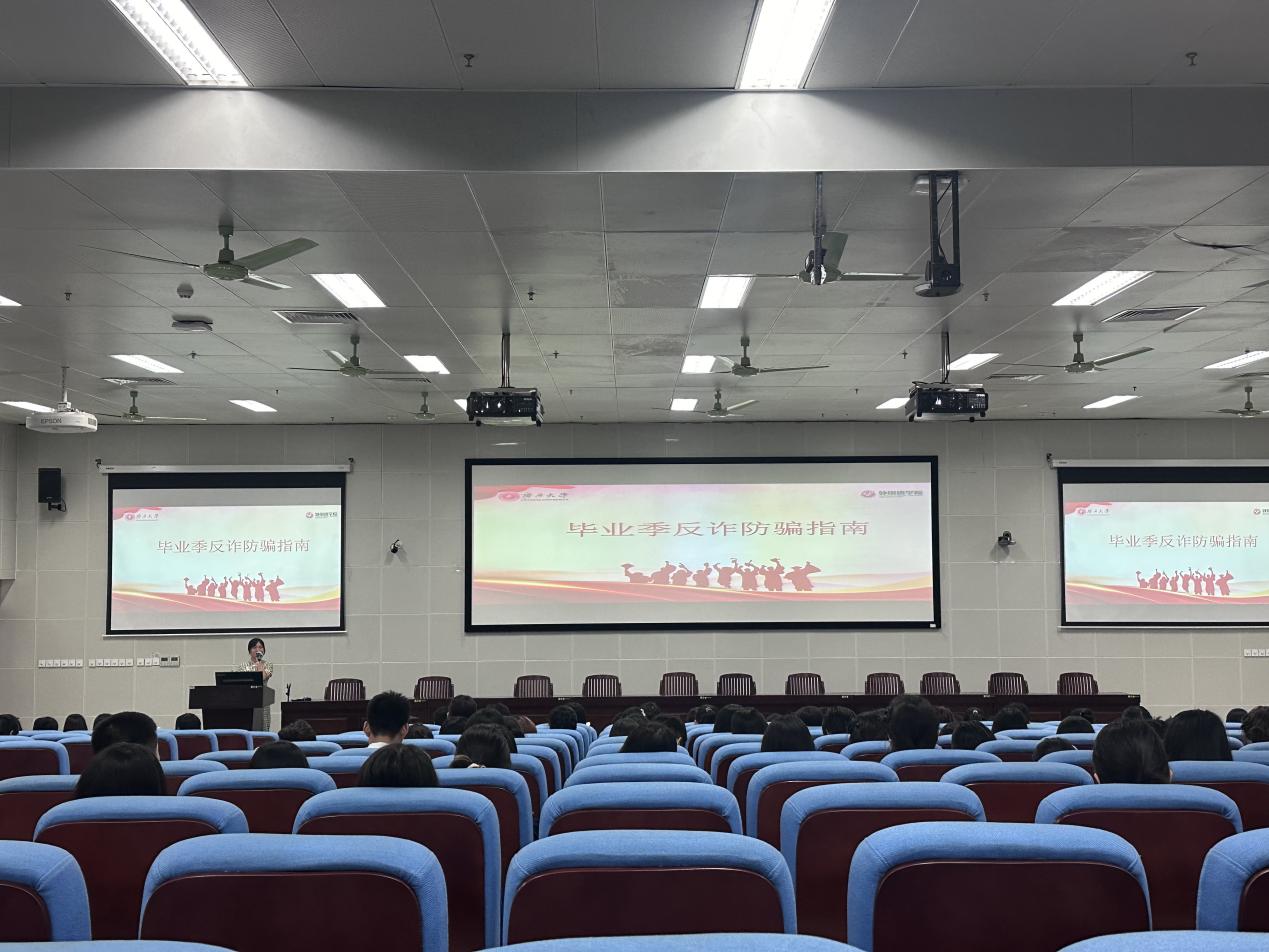 辅导员韦霜霜围绕“文明·安全·敬业”三个关键词开展毕业生离校教育。一是文明离校,重点强调了诚信与感恩的重要性,要求毕业生做好宿舍卫生清理及各项离校手续办理工作。二是毕业季反诈防骗,针对毕业季诈骗案件高发态势,她总结了针对毕业生的常见骗局与防诈指南,希望毕业生提高反诈防骗意识,有效防范诈骗。三是保密与国家安全,希望毕业生在未来的工作岗位上始终将国家安全意识深植心间,助力在新征程上披荆斩棘、行稳致远。最后,她对团员组织关系转接流程进行说明和指导。