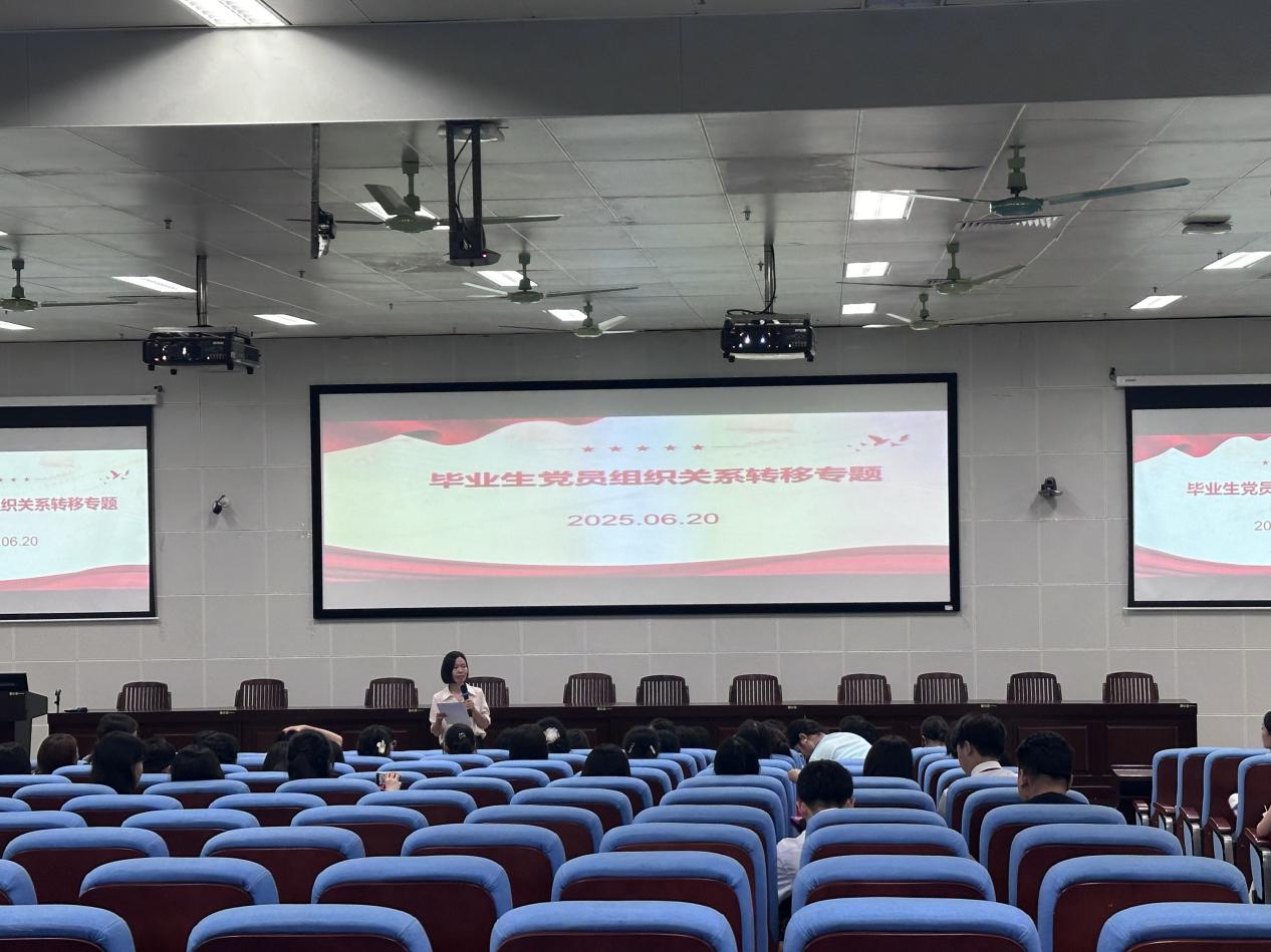随后,专职组织员邓烨桦就毕业生党员组织关系转移工作进行了专题部署和说明。她详细讲解了党组织关系转接的重要性、党组织关系转接的规定、党组织关系转接的程序以及注意事项、关键节点等方面的内容,为确保毕业生党员顺利完成组织关系做好了充分准备。
