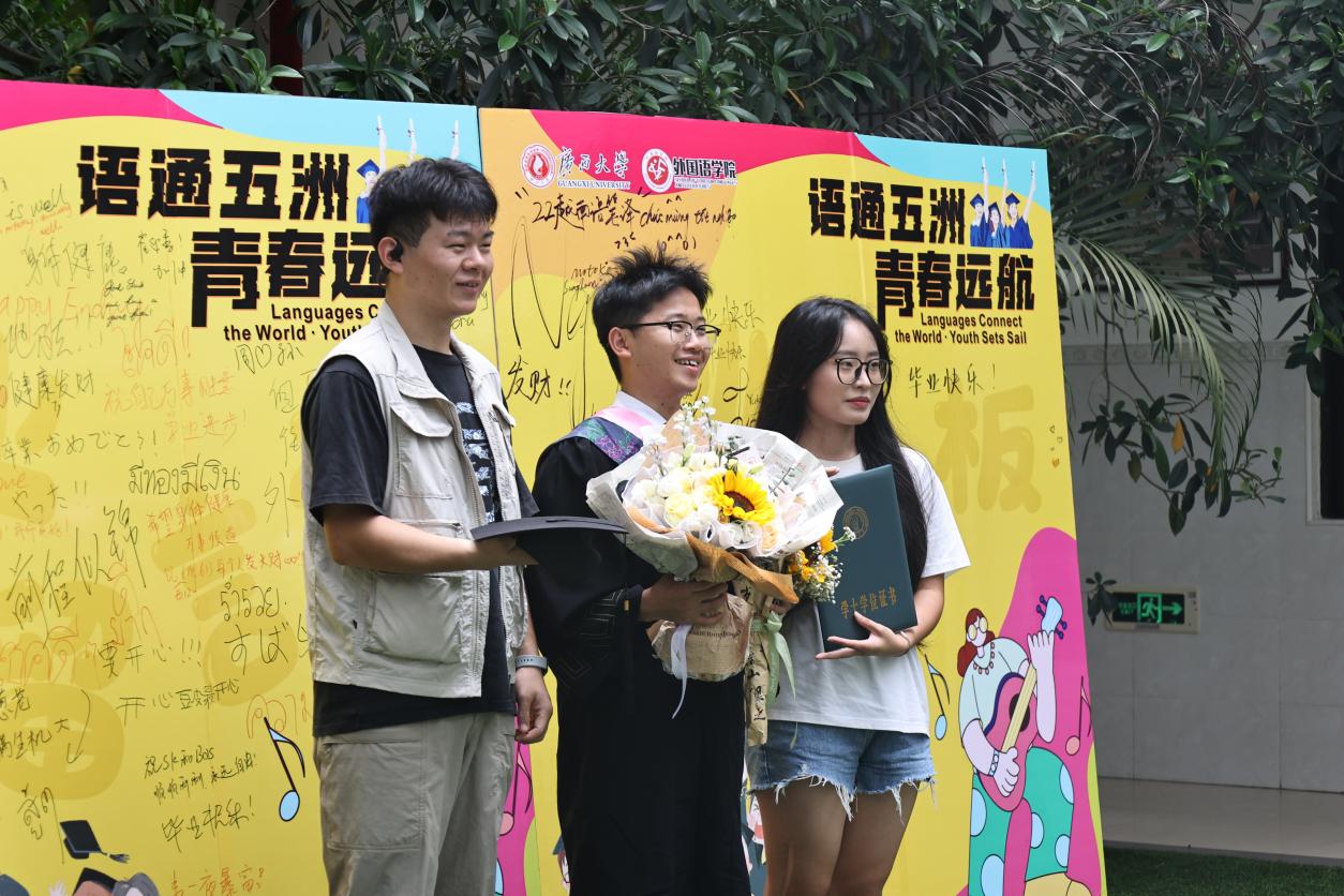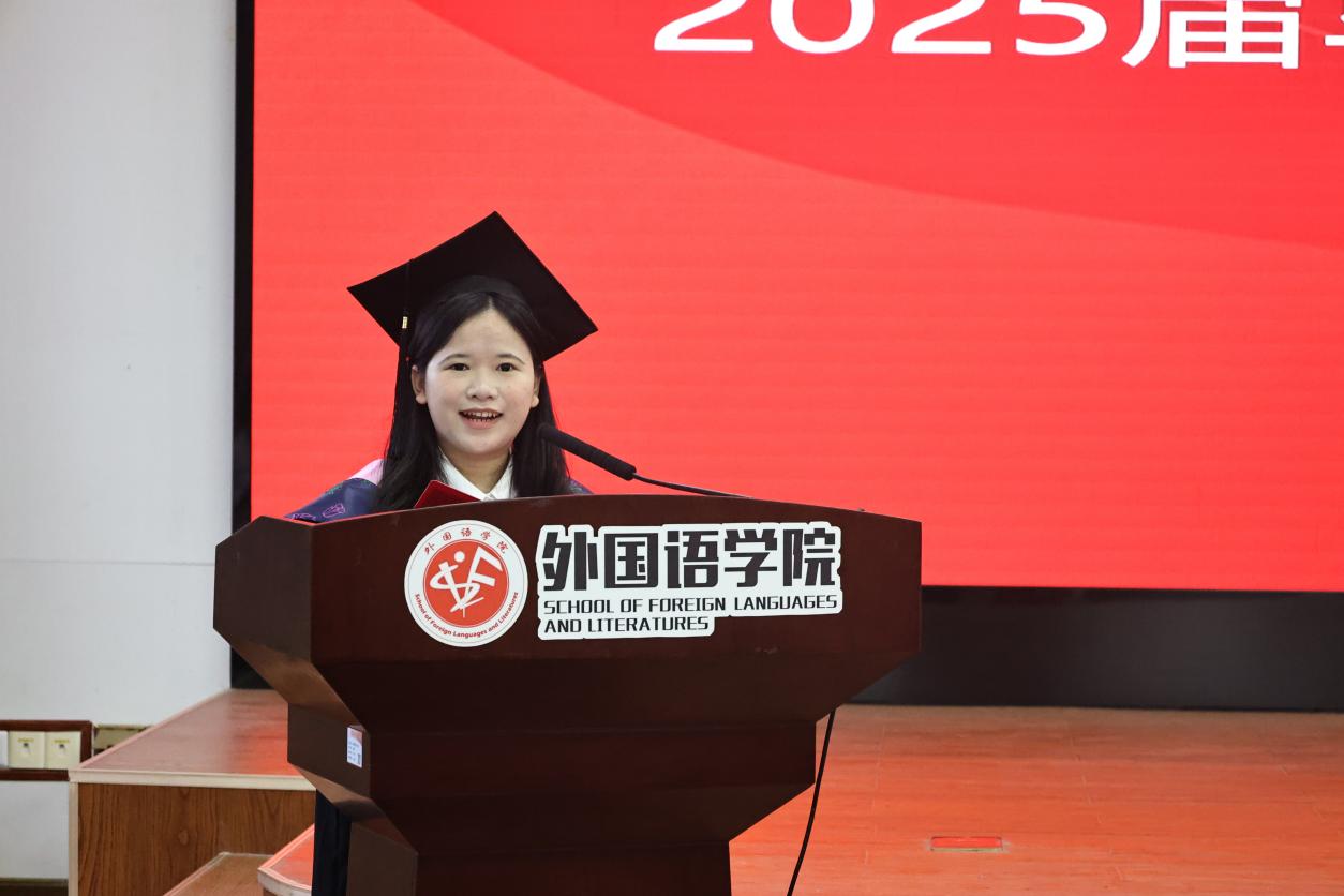 教师代表方晓和祁广谋对毕业生致以热烈的祝贺和深情的祝福。他们回顾与同学们的在校点滴,表达对同学们的深深眷恋与不舍,鼓励同学们以担当回答青春的意义,厚植家国情怀,持续崇德向善,知行合一,做中华文明的讲述者和传播者。同时,也祝福同学们前程似锦,事业有成,生活美满,成就美好人生!