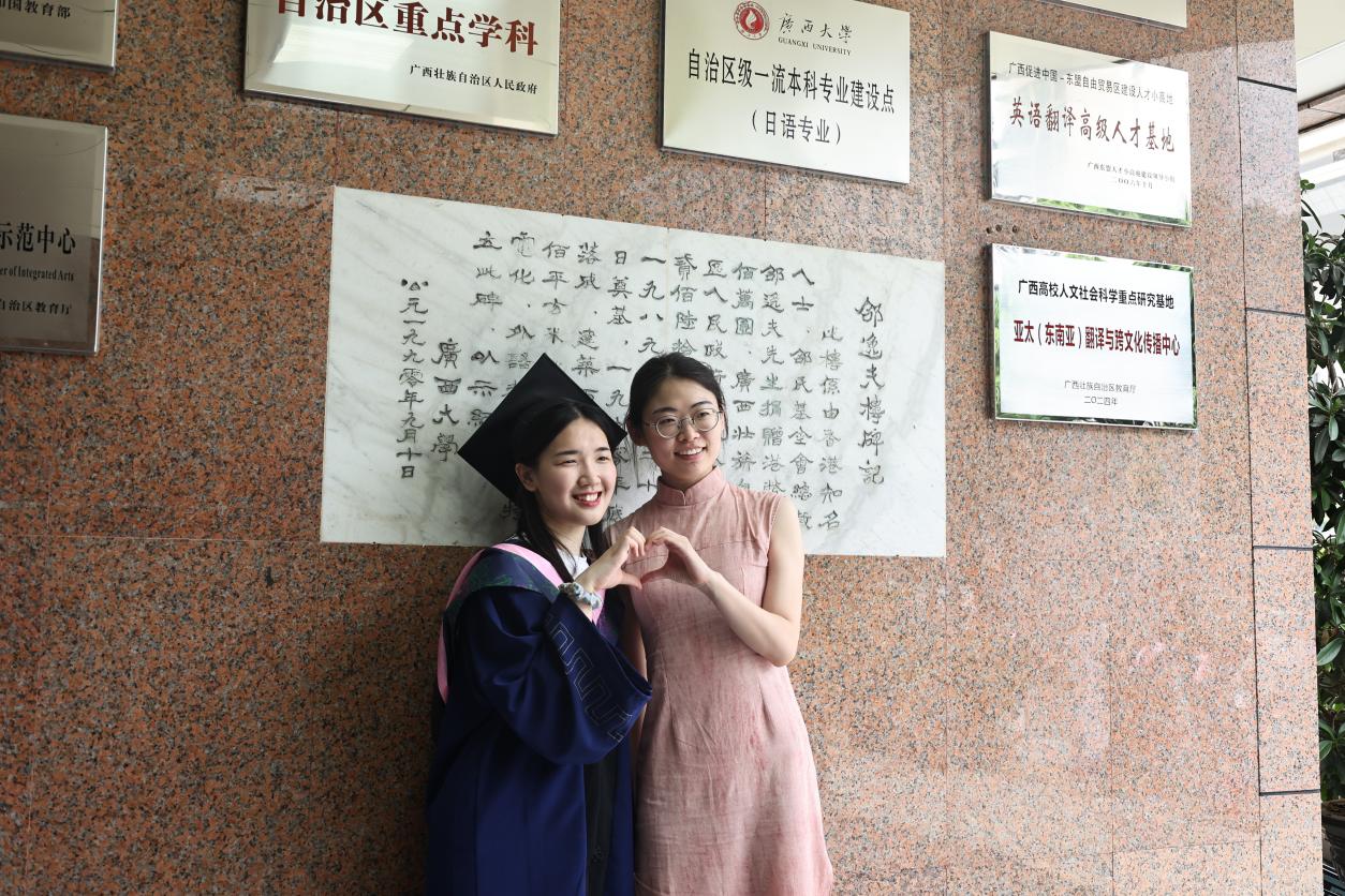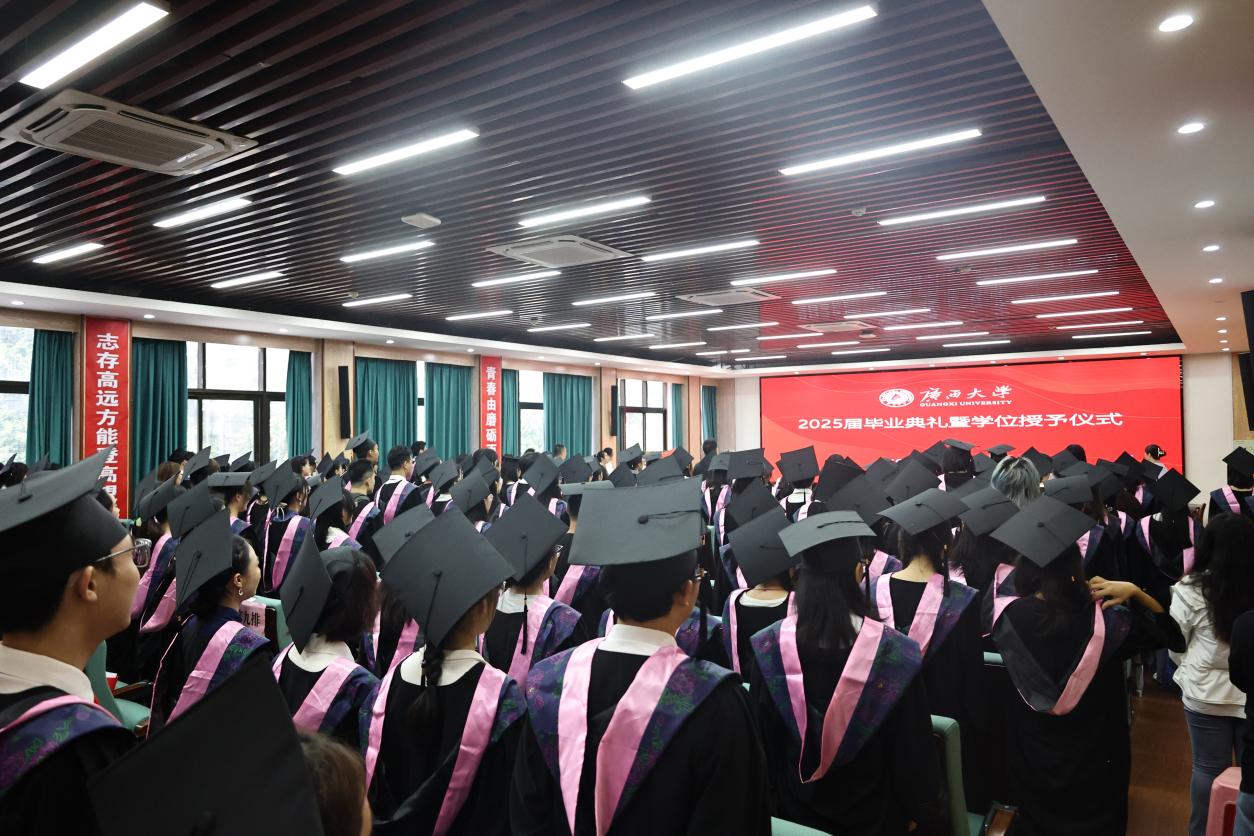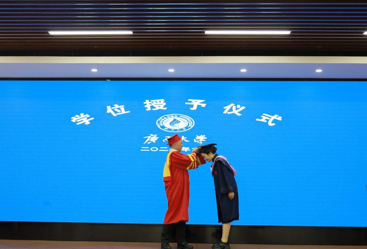 “复兴中华,发达广西”“努力,努力,大家一齐努力”,毕业典礼暨学位授予仪式在奏唱校歌声中落下帷幕。