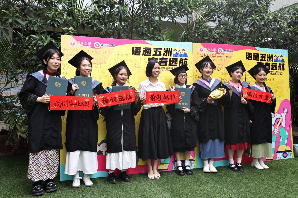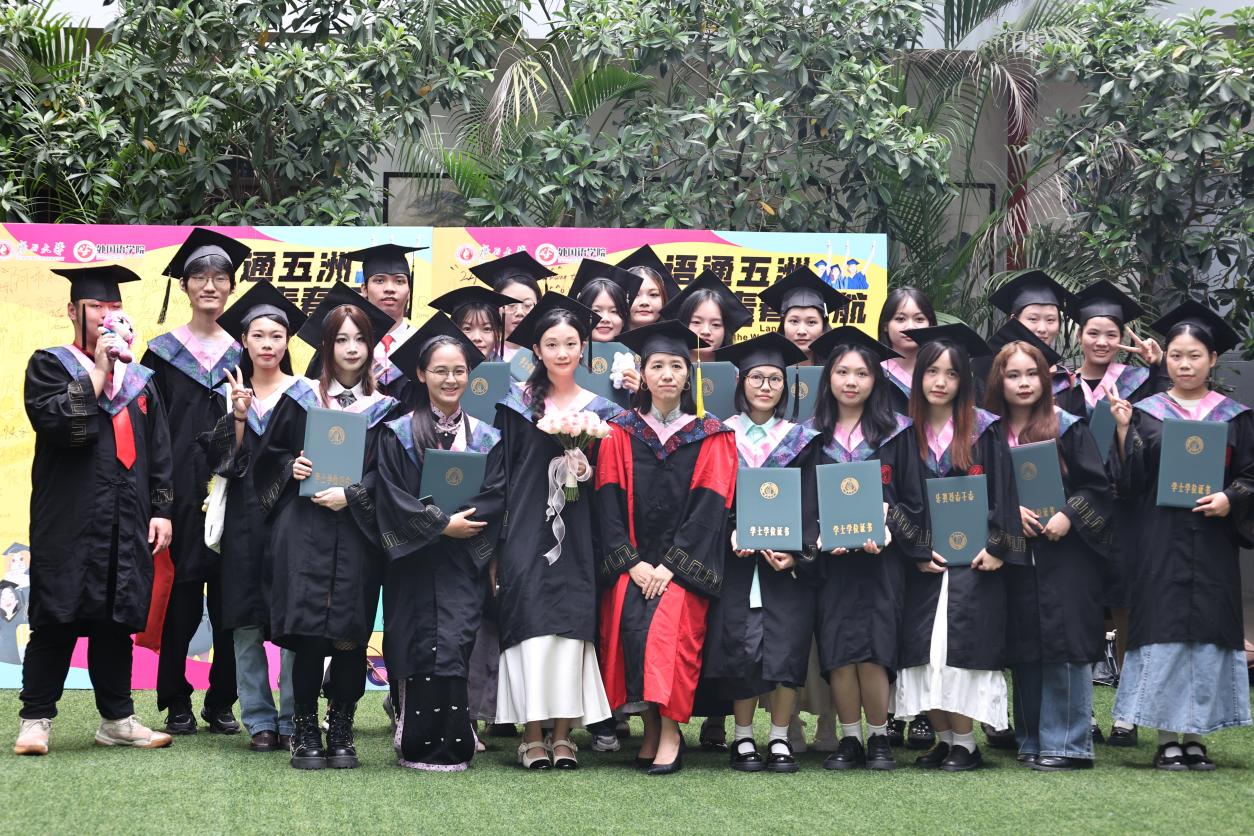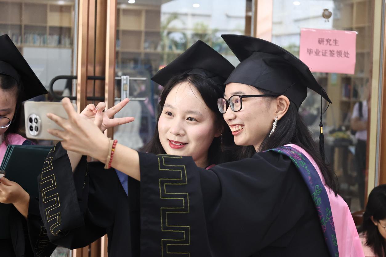 随后进行学位授予仪式,邓联健院长庄重地获得学士、硕士学位的毕业生逐一拨穗正冠、颁发学位证书,并与每位毕业生亲切握手、合影留念。