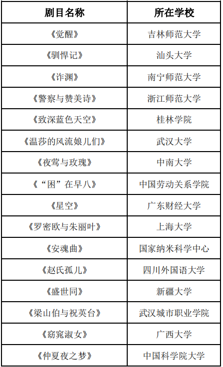“第二届全国大学生英语戏剧节”决赛入围名单
