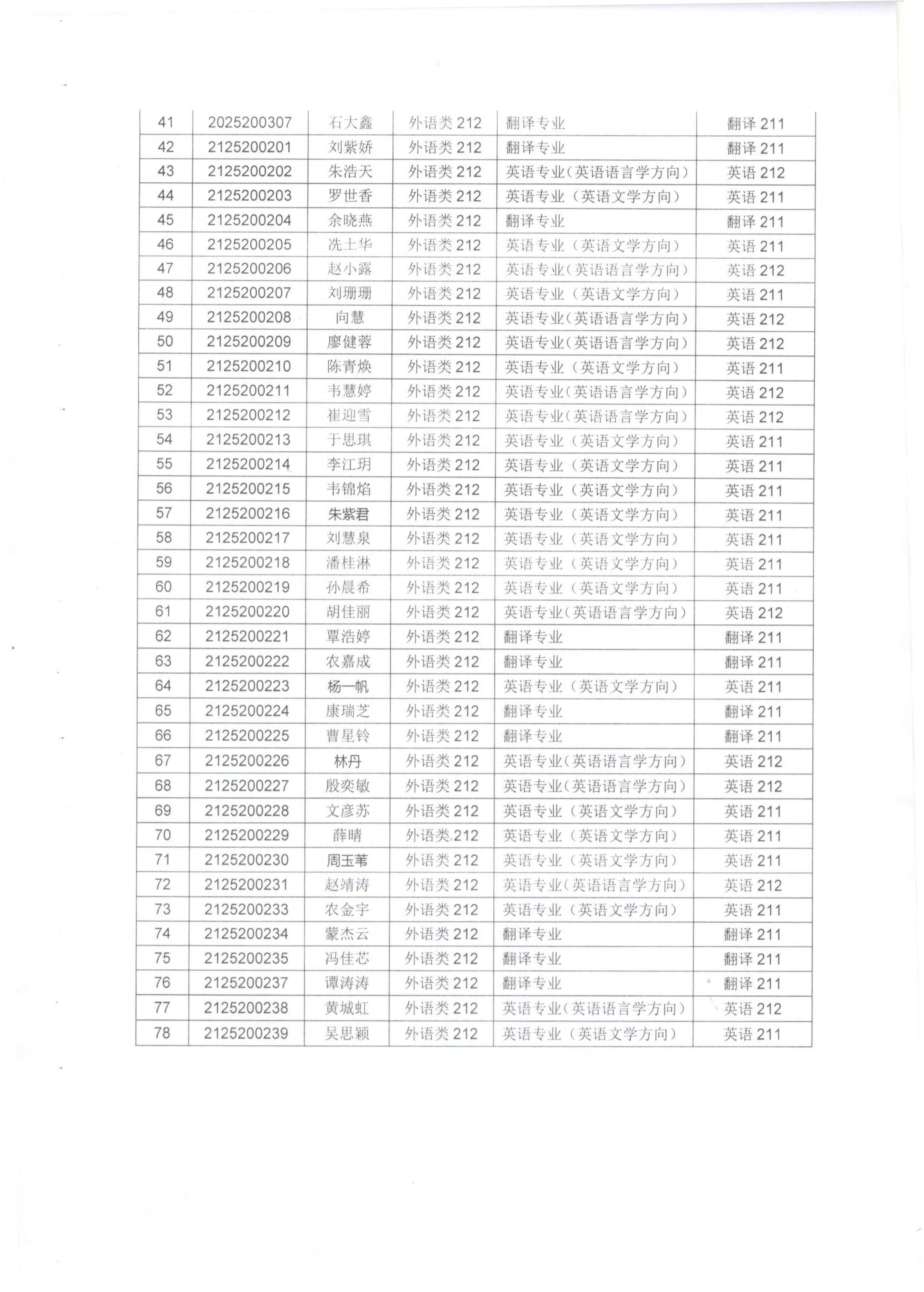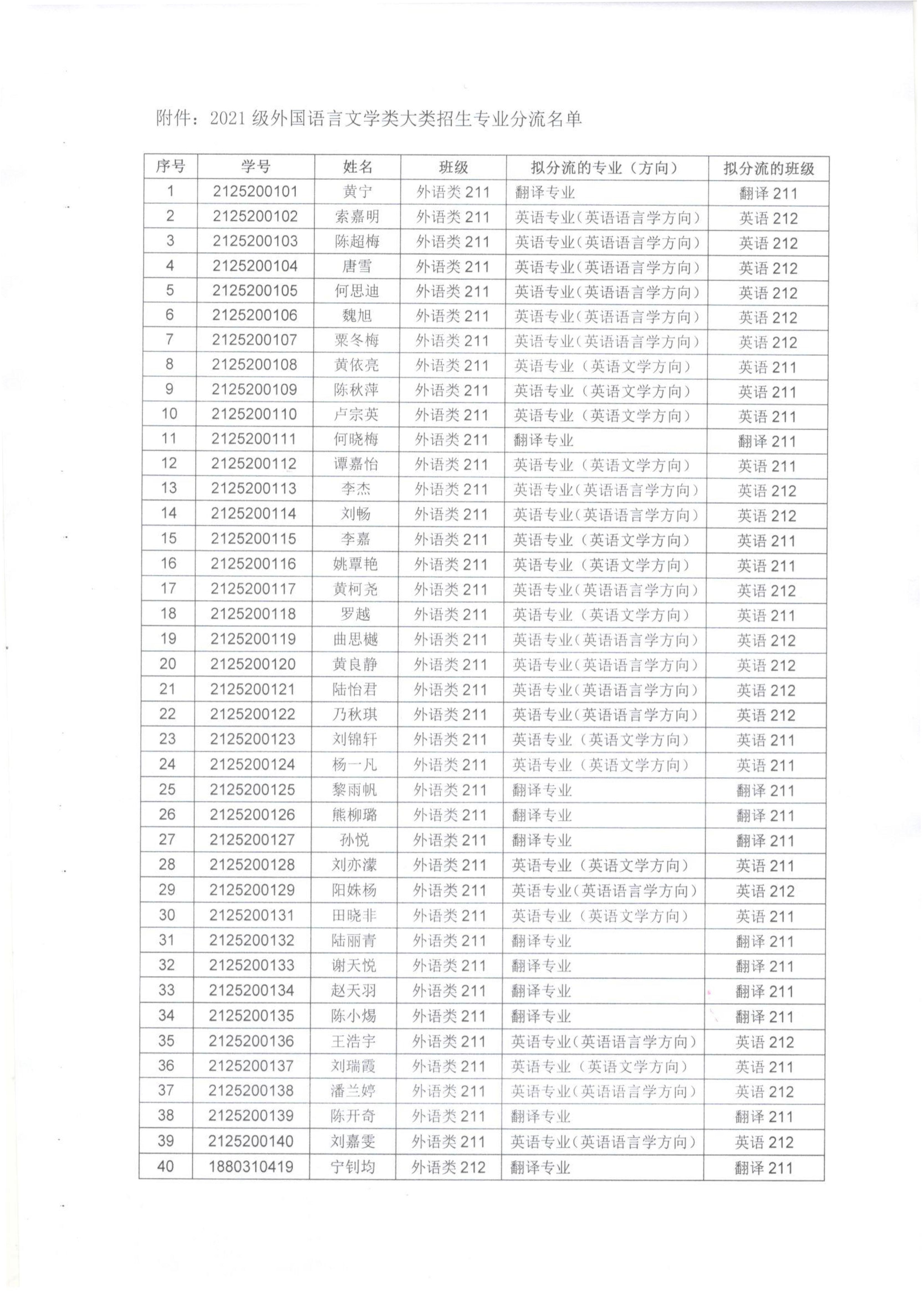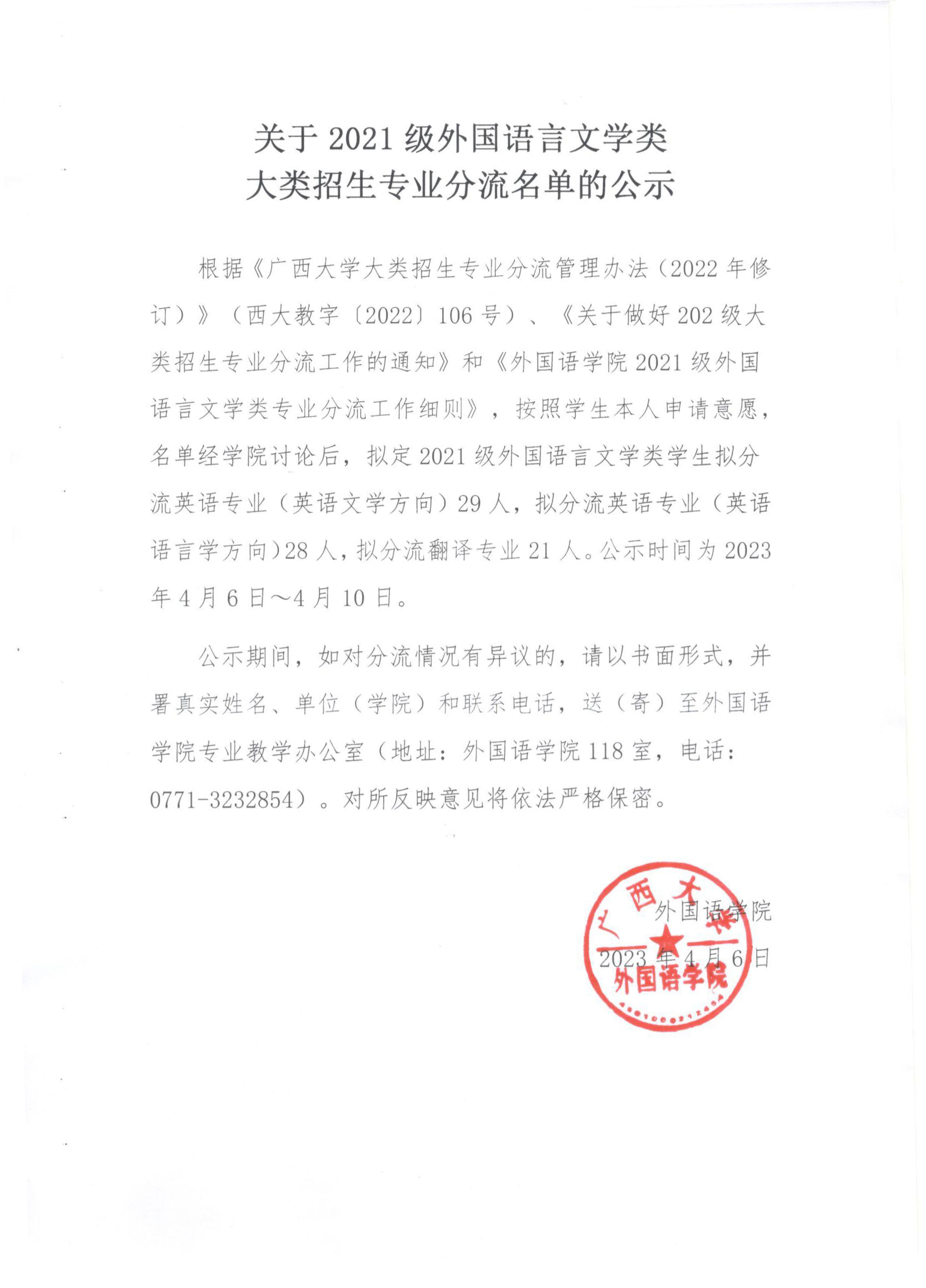 关于2021级外国语言文学类大类招生专业分流名单的公示