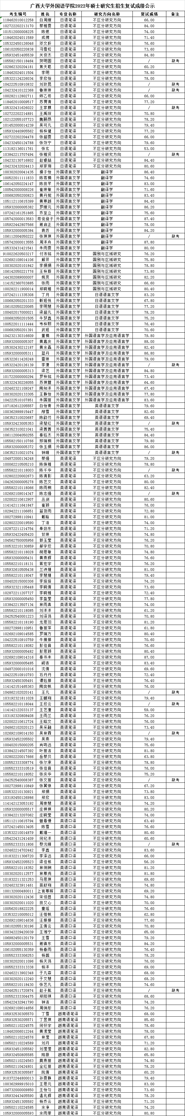 广西大学英国上市公司3652022年硕士研究生招生复试成绩公示