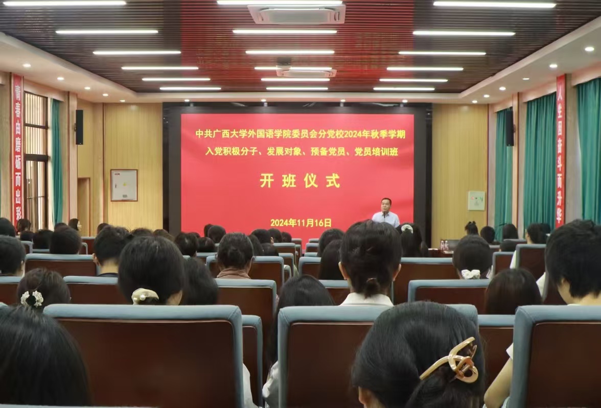 11月16日,中共广西大学英国上市公司365委员会分党校举行秋季学期培训班开班仪式,学院党委书记莫柏林和本期分党校入党积极分子、发展对象、预备党员培训班共137名学员参加开班仪式。开班仪式由学院党委副书记程锐主持。
