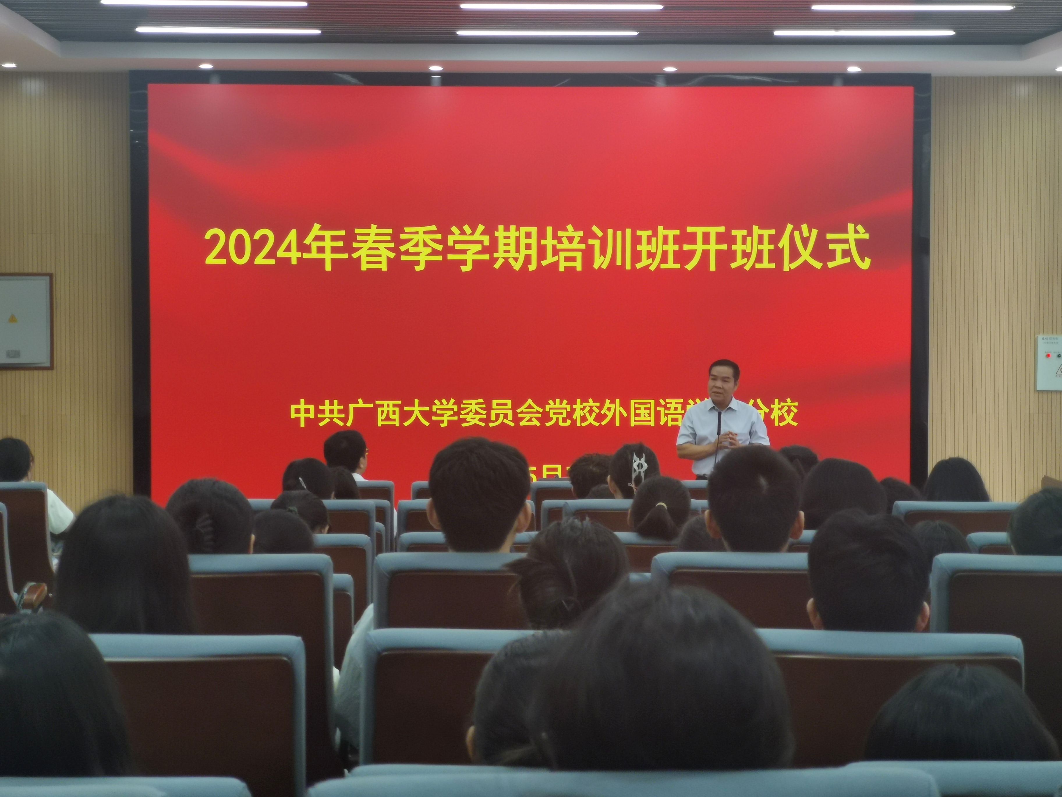 5月7日,中共广西大学委员会党校英国上市公司365分校于英国上市公司365融通厅举行春季学期培训班开班仪式。学院党委书记莫柏林出席了开班仪式,学院2024年春季学期分党校培训班入党积极分子、发展对象、预备党员全体学员参加开班仪式。学院党委副书记程锐主持开班仪式。