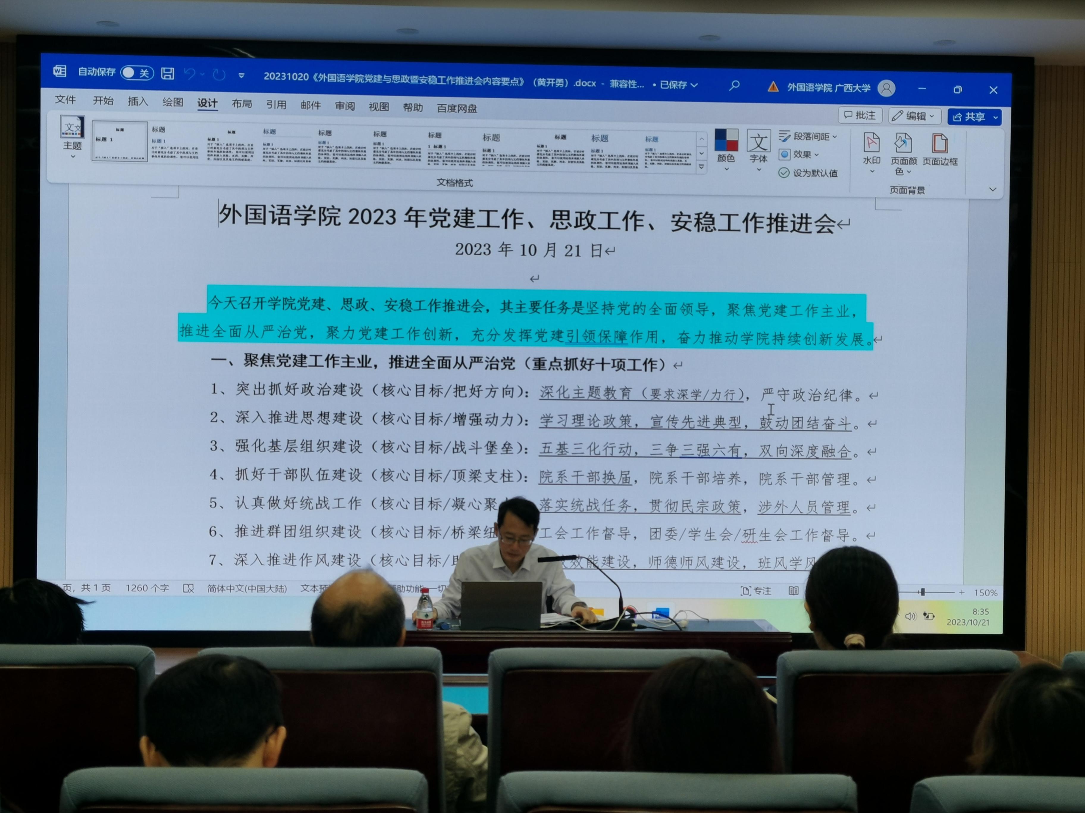 10月21日上午,英国上市公司365党委在学院融通报告厅召开2023年党建工作、思政工作、安稳工作推进会,主要任务是坚持党的全面领导,聚焦党建工作主业,深入推进全面从严治党,聚力党建工作创新,发挥党建引领保障作用,凝心聚力推动学院创新发展。