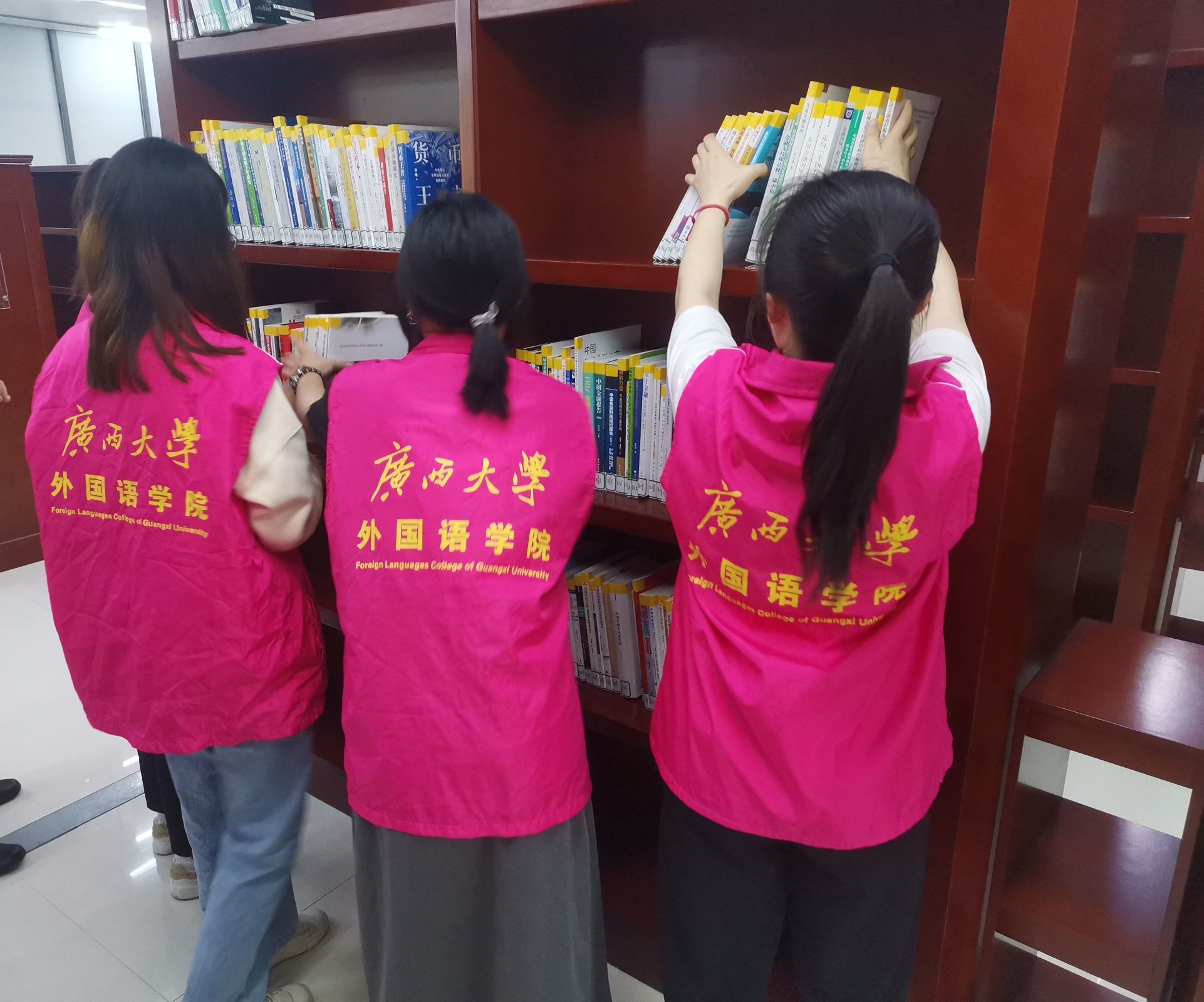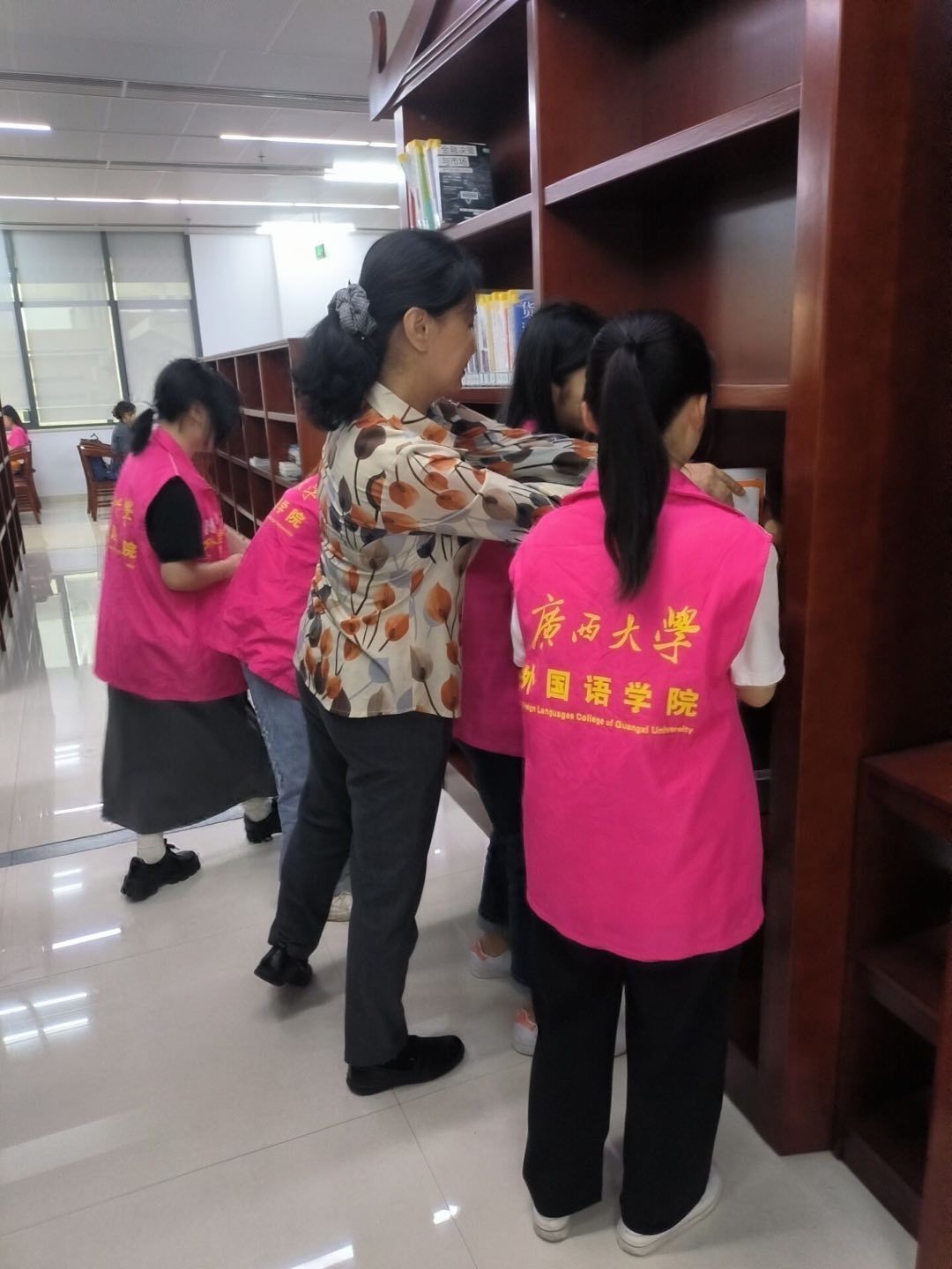 日语专业本科生党支部协助学校图书馆进行书籍的整理与摆放