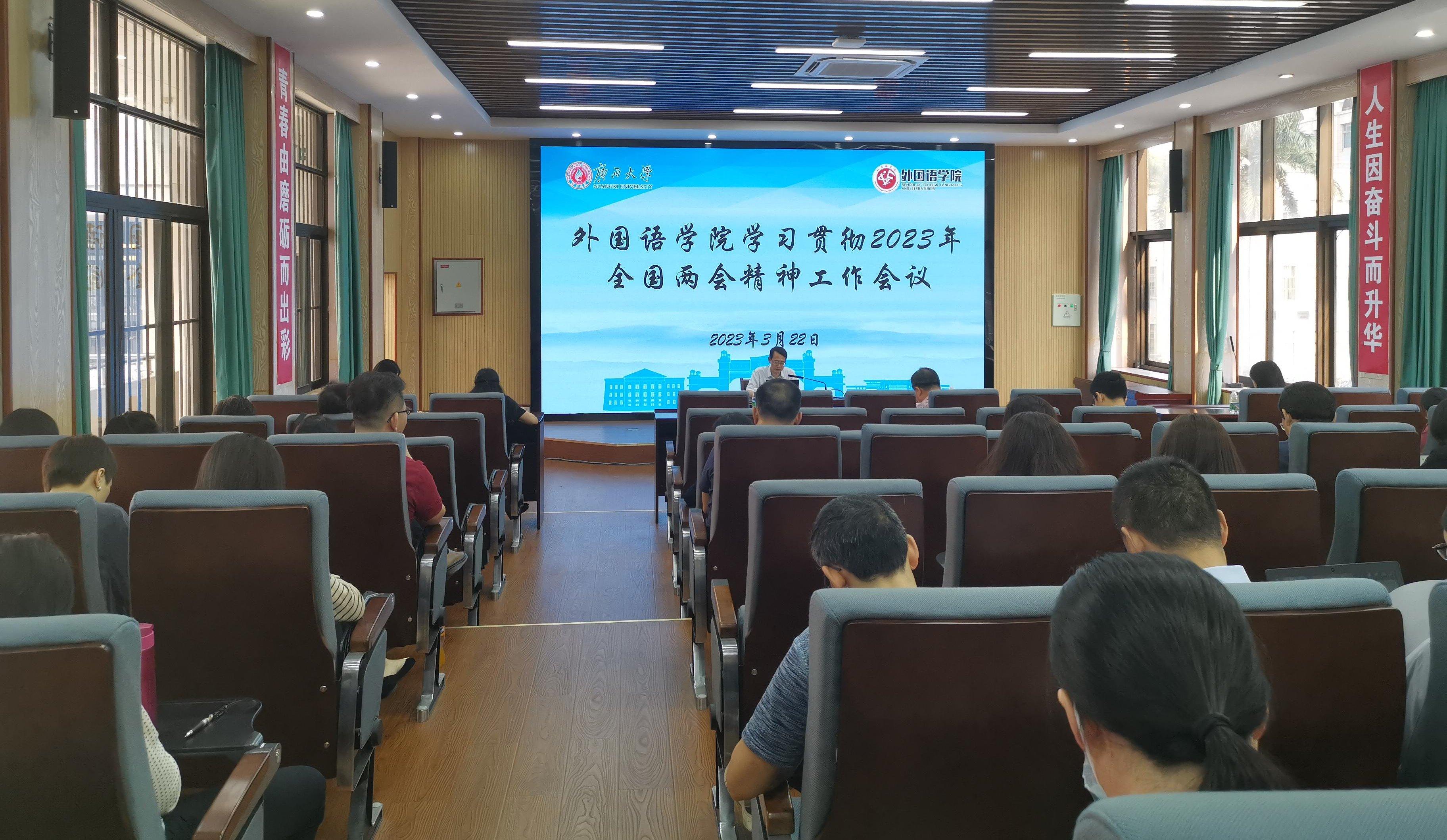 会议强调,学习贯彻全国两会精神是当前和今后一个时期全党全国的一项重要政治任务。各级领导干部都要充分发挥表率作用,积极引领师生深入学习、宣传、贯彻全国两会精神。全体师生要全面系统学、及时跟进学、深入思考学、联系实际学,要在多思多想、学深悟透上下功夫,要在系统全面、融会贯通上下功夫,要在知行合一、学以致用上下功夫,把学习成效转化为推动学院全面创新发展的强大力量,以实际行动贯彻落实党的二十大精神。