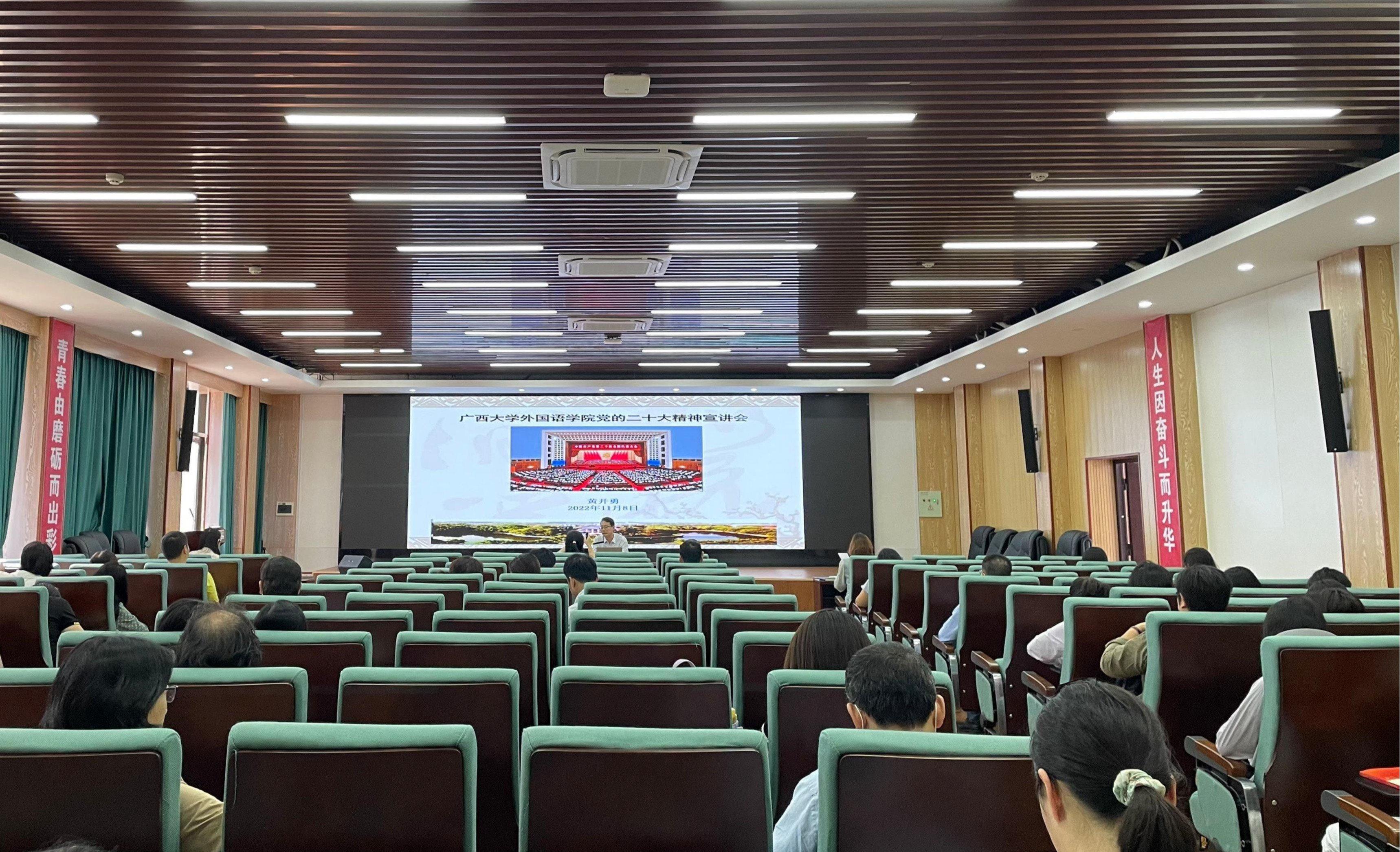 11月8日下午,英国上市公司365党委在学院求是报告厅召开党的二十大精神宣讲会。宣讲会由学院党委书记黄开勇主讲,全体教师参加宣讲会。