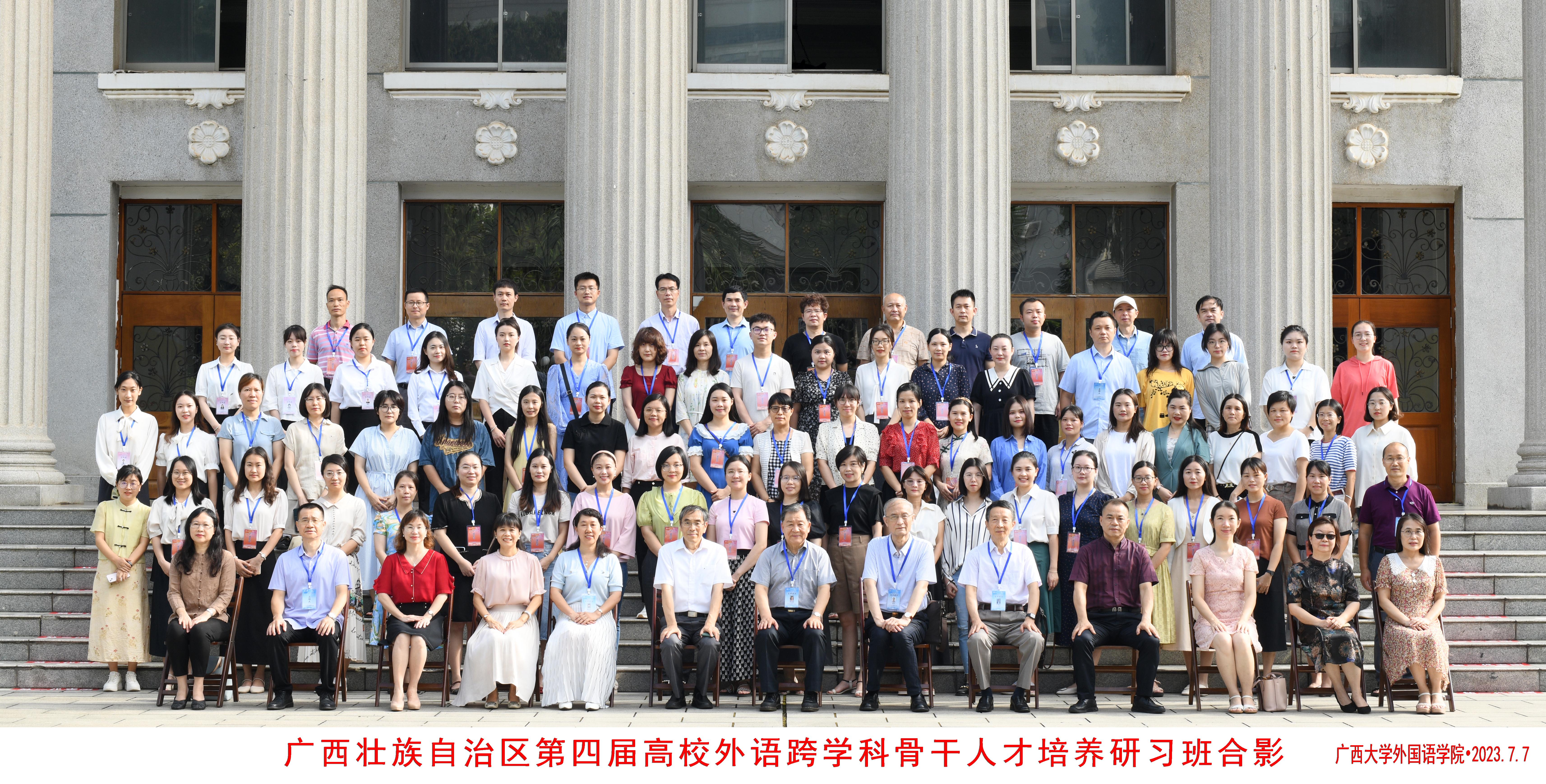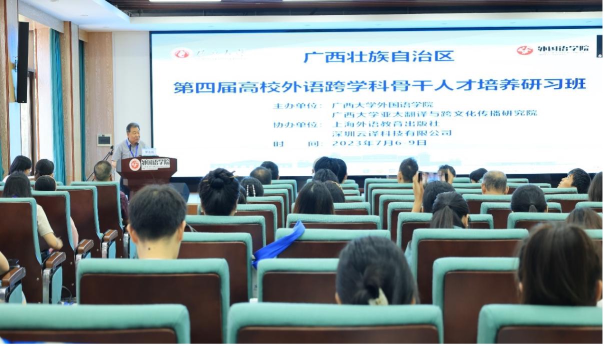 外语学科大业,多元人才为本。在国家“双一流”建设和“新文科”发展的新时代背景下,外语学科建设越来越重视跨学科研究的战略转变。2023年7月6-9日,广西壮族自治区第四届高校外语跨学科骨干人才培养研习班在广西大学英国上市公司365成功举办。本届研习班为期三天,共邀请罗选民、王宁、陆建德、陈国华、严辰松、向明友、刘岩、王岚、陶友兰、刘全国、胡凌等11位国内知名专家学者作为主讲嘉宾,吸引了广西民族大学、南宁师范大学、广西医科大学、广西民族师范学院、桂林理工大学、北部湾大学等来自全区9个城市28所高校单位的106名学员前来交流学习。
