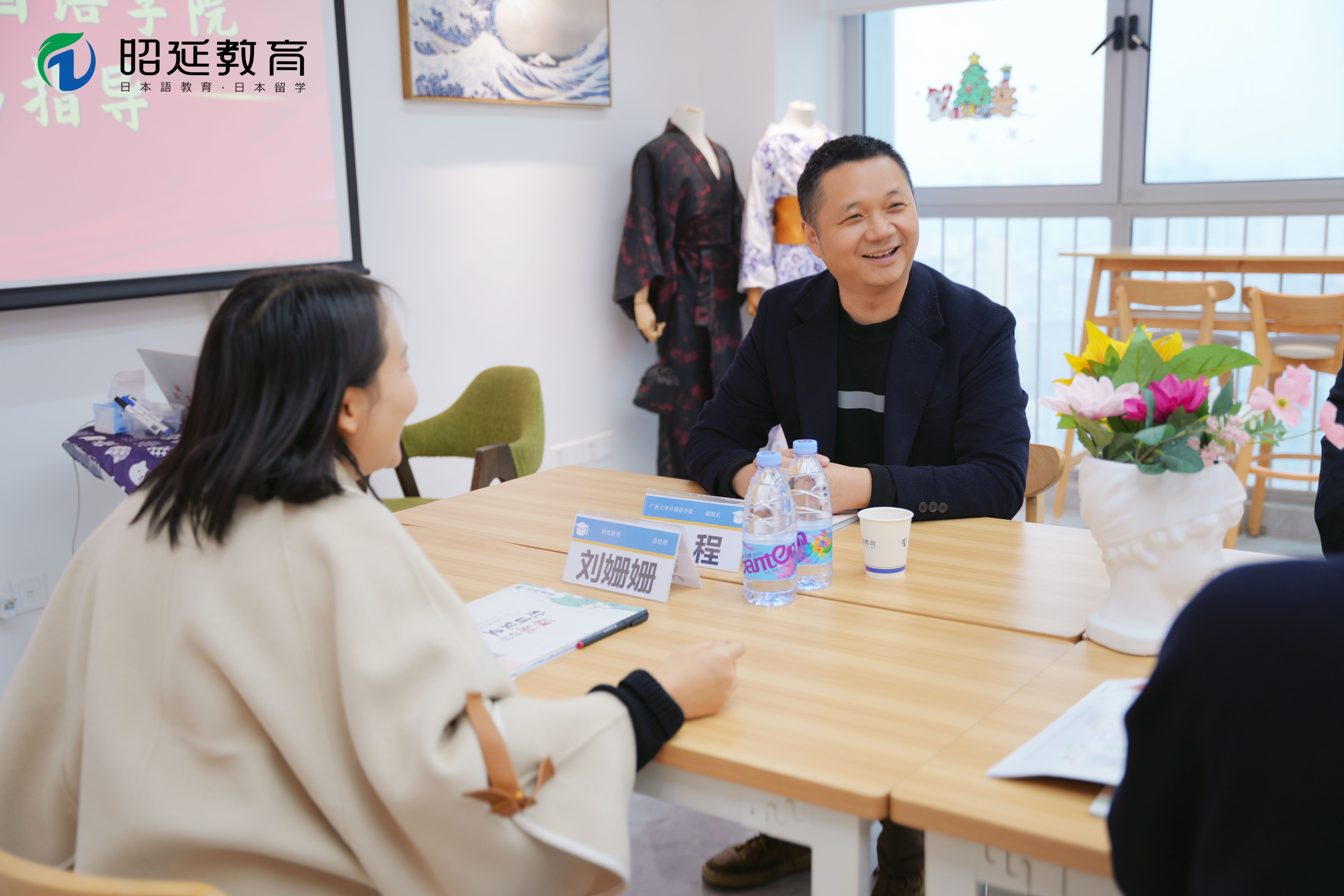 在随后的深度交流环节,双方围绕日语中等教育与高等教育的发展现状、行业趋势展开热烈探讨。此次西大外院与昭延教育的校企合作,正是“产教融合”的生动实践,在未来将为西大日语专业学生提供日语教学辅助、留学规划实操、跨文化交流服务等丰富的实习岗位,实现“校园学习-行业实践-就业衔接”的无缝对接。
